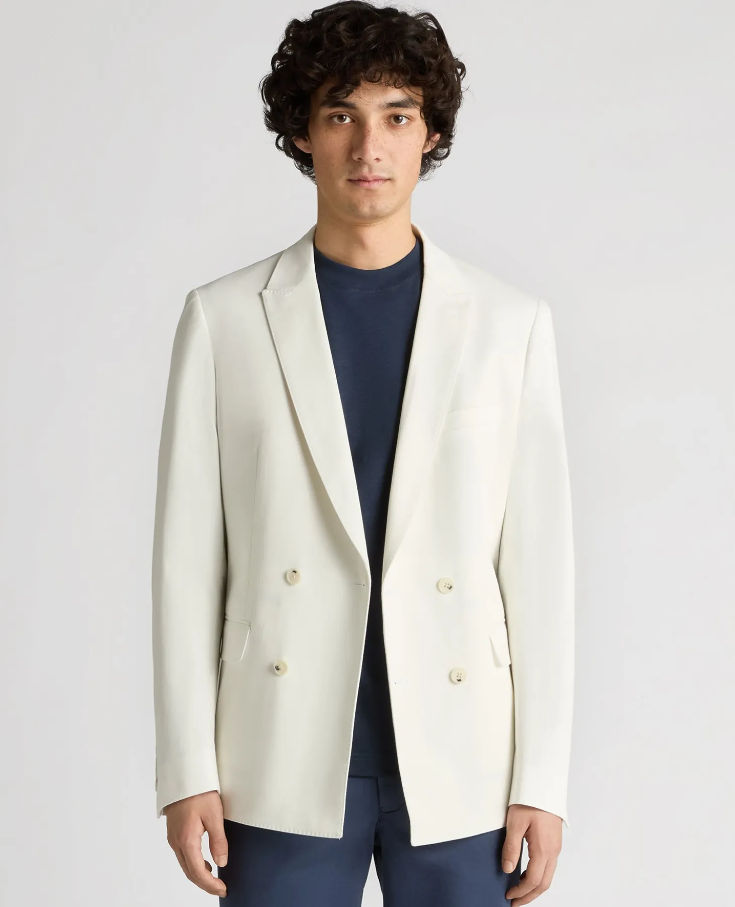 A fresh take on a traditionally formal jacket, this piece is far easier to wear than you d expect. Its crisp white finish keeps things light while the double-breasted front adds just enough structure to make it a strong choice for those nicer plans in the diary.