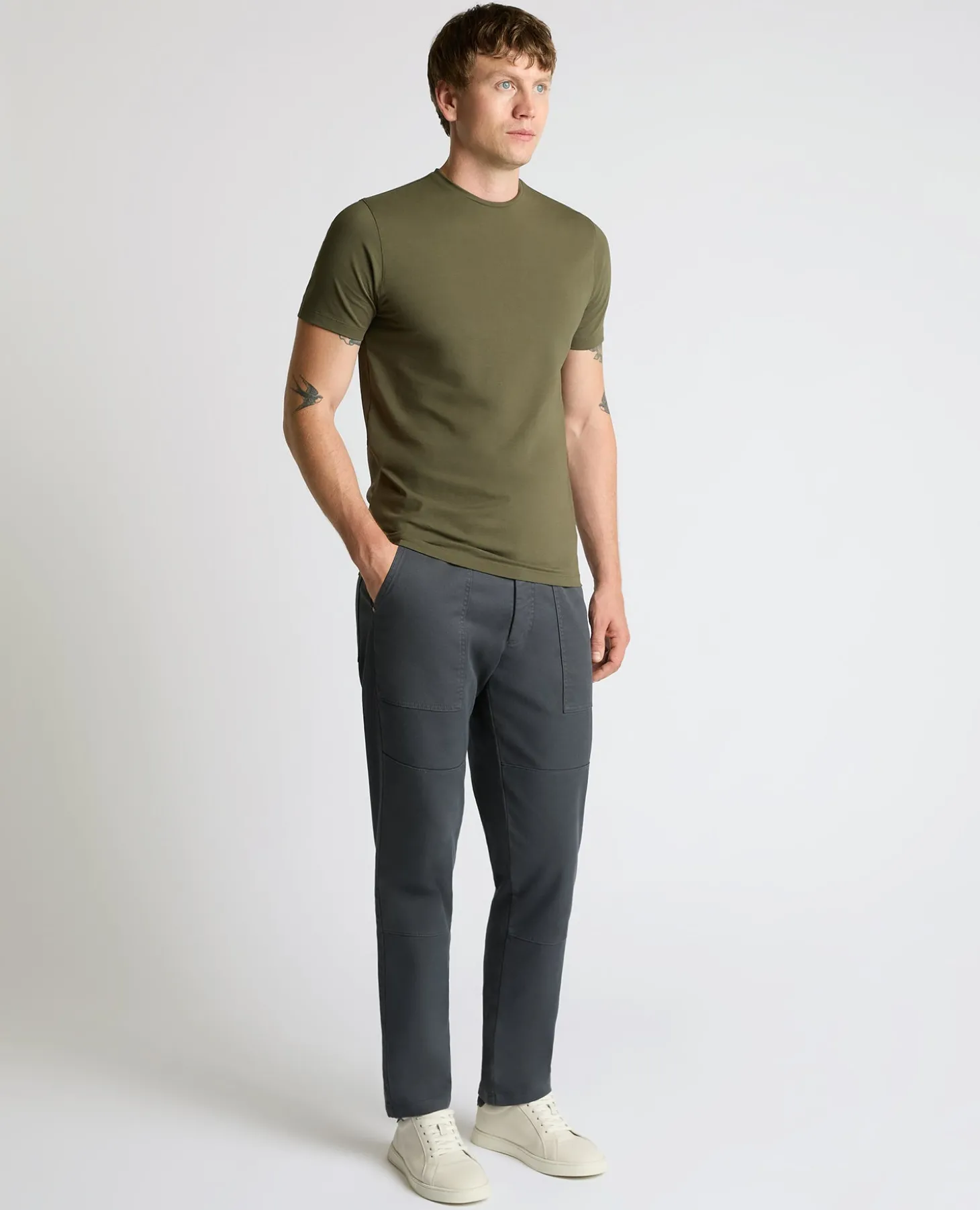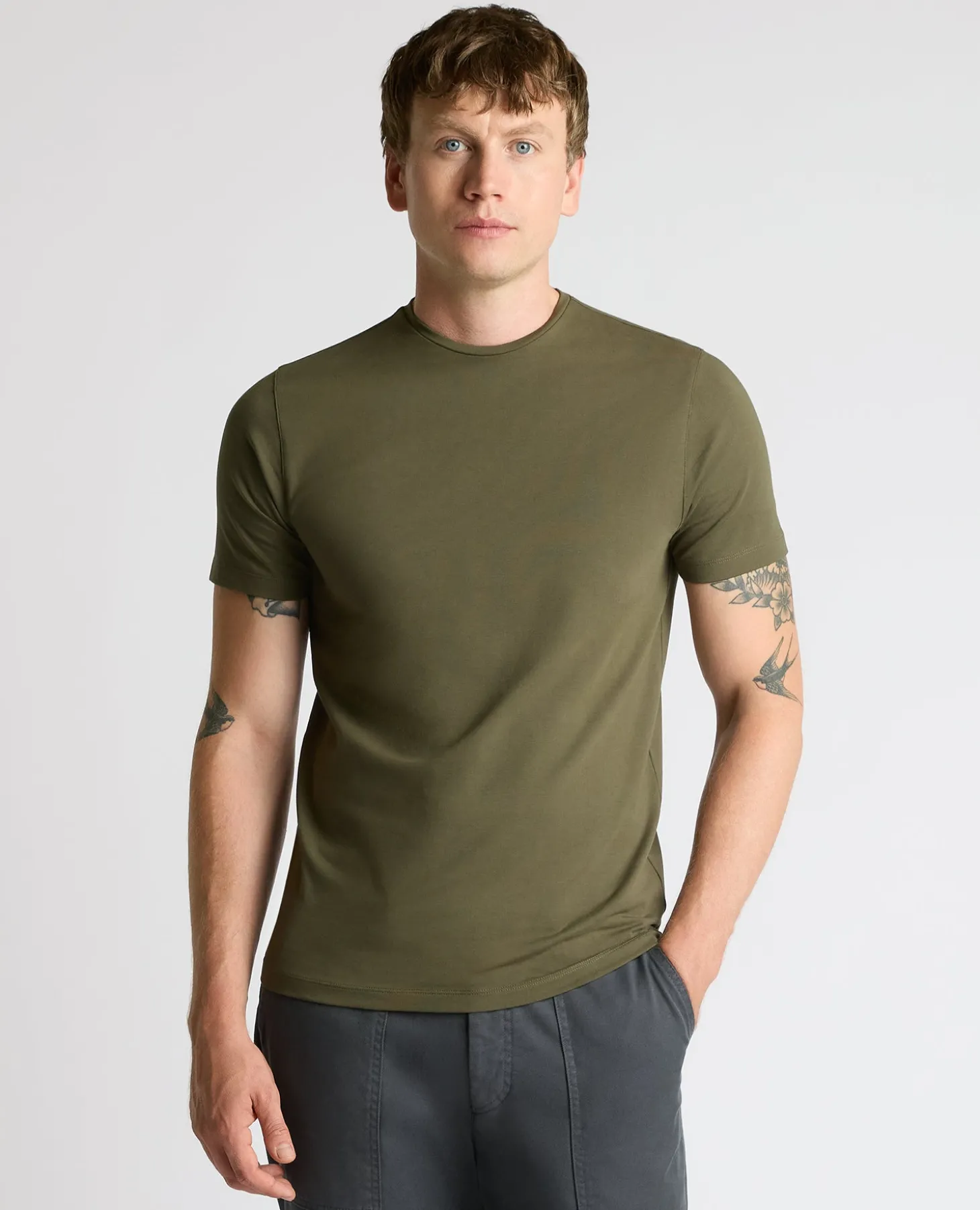 Model is 6’2”/188cm tall and wears a t-shirt in size M. Model has a 15.5-inch collar, a 40” chest and 32” waist.