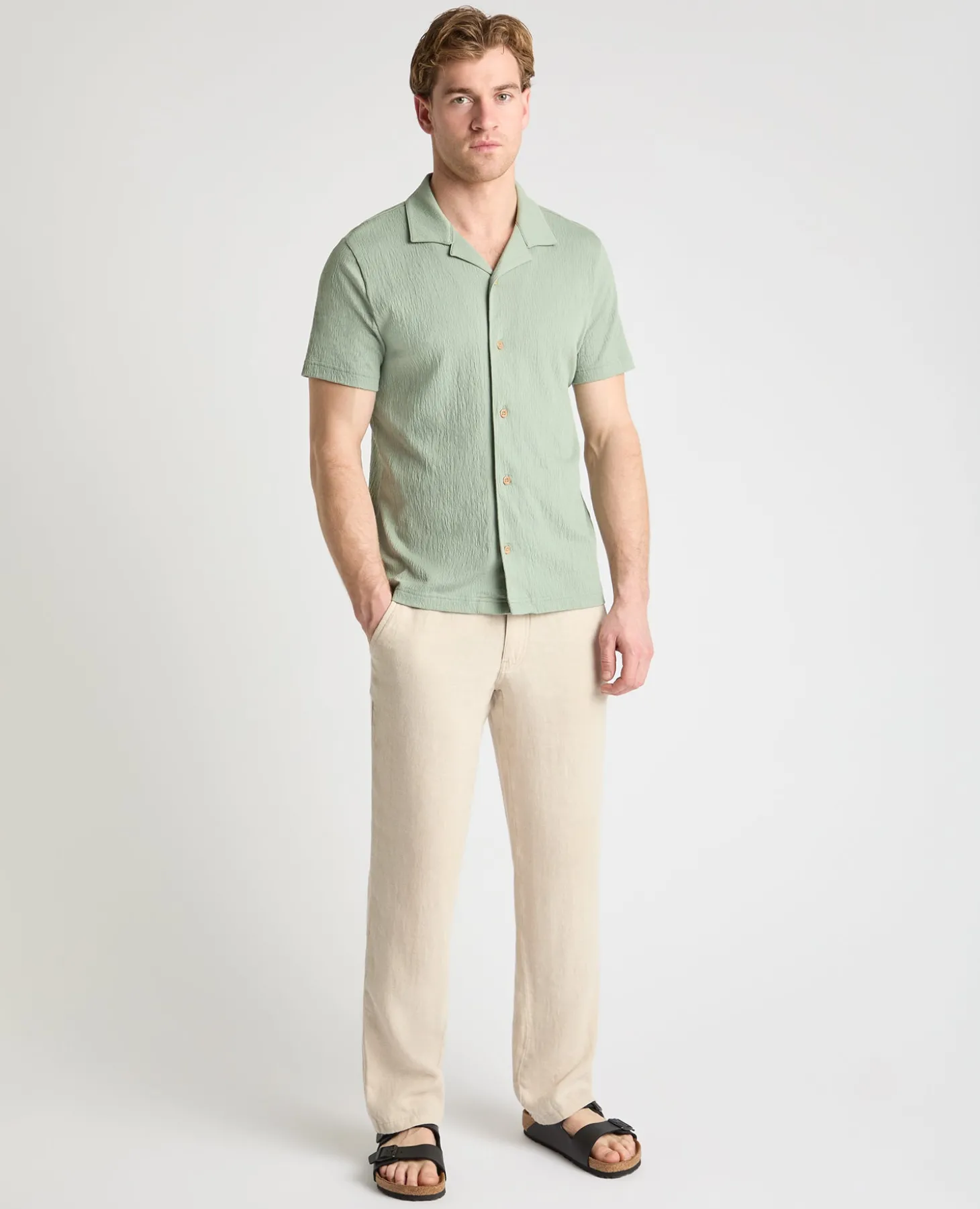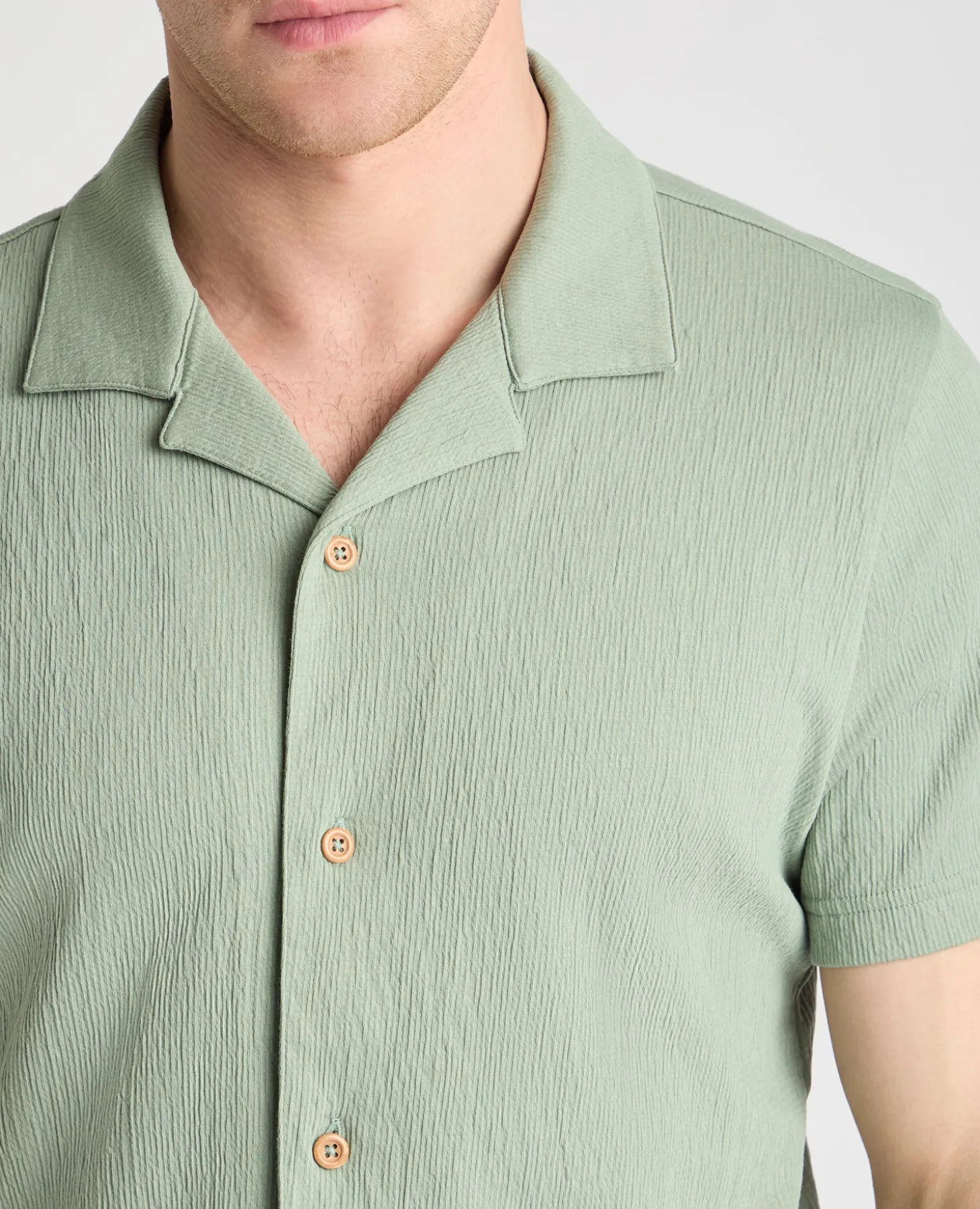 An easy warm-weather option that doesn t try too hard. The crinkle-textured jersey adds subtle character while keeping things relaxed and comfortable. Finished with a laid-back Cuban collar, it works just as well buttoned up with chinos or shorts as it does worn open over a tee. Ideal for sunny afternoons and easy-going plans.