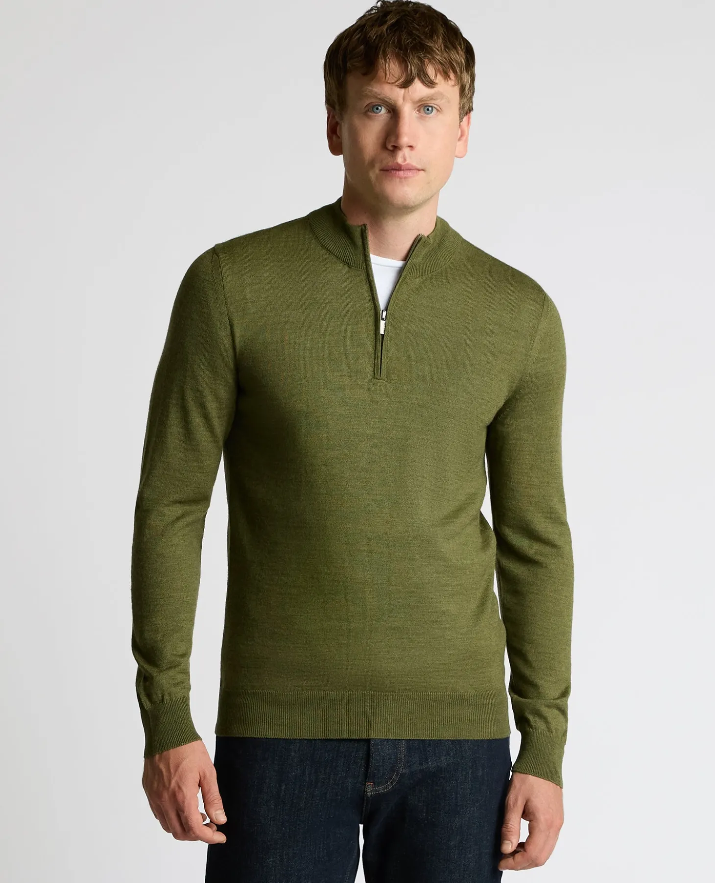 Model is 6’2”/188cm tall and wears a tapered fit sweater in size M. Model has a 15.5 inch collar, a 40” chest and 32” waist.