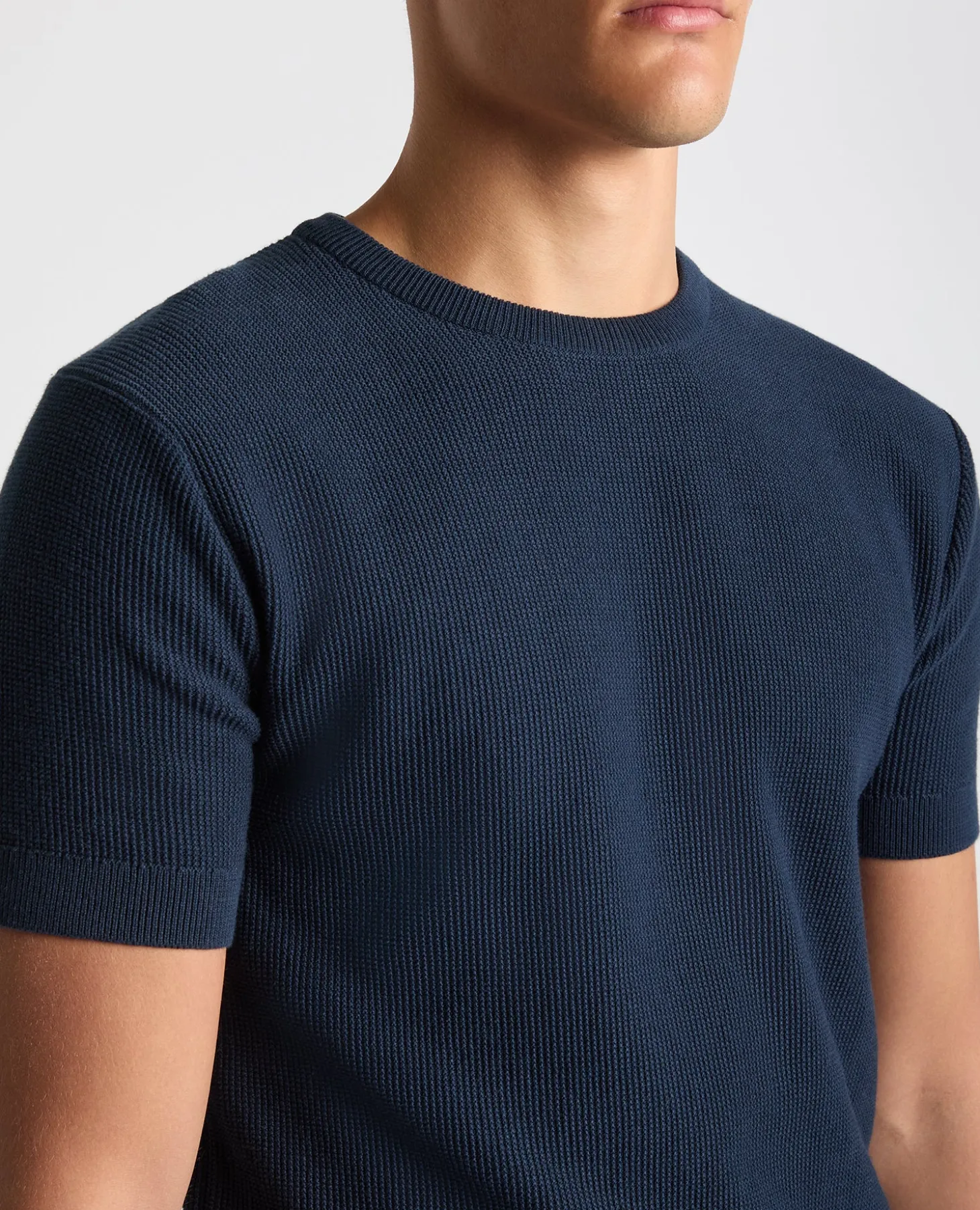 Not your average T-shirt. This knitted crew is crafted from pure cotton with a waffle-knit structure that adds texture, breathability, and more substance than a standard tee. Easy to style on its own and ideal for layering, it brings a more considered feel to everyday dressing. Pair with chinos for a more refined look or keep it casual with denim. It s a simple upgrade that makes a difference without trying too hard.