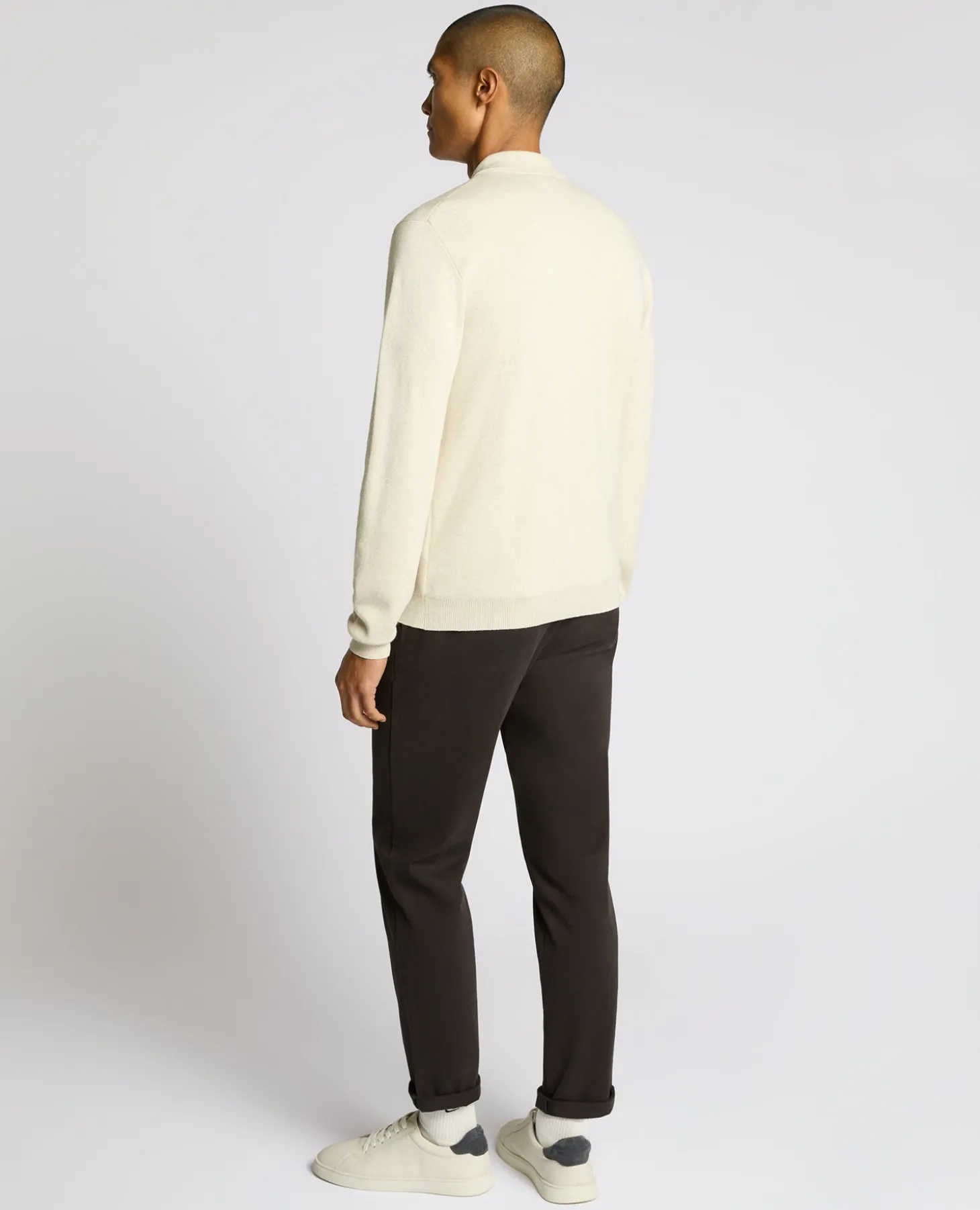 Model is 6’2”/188cm tall and wears a tapered fit sweater in size M. Model has a 15.5 inch collar, a 40” chest and 32” waist.