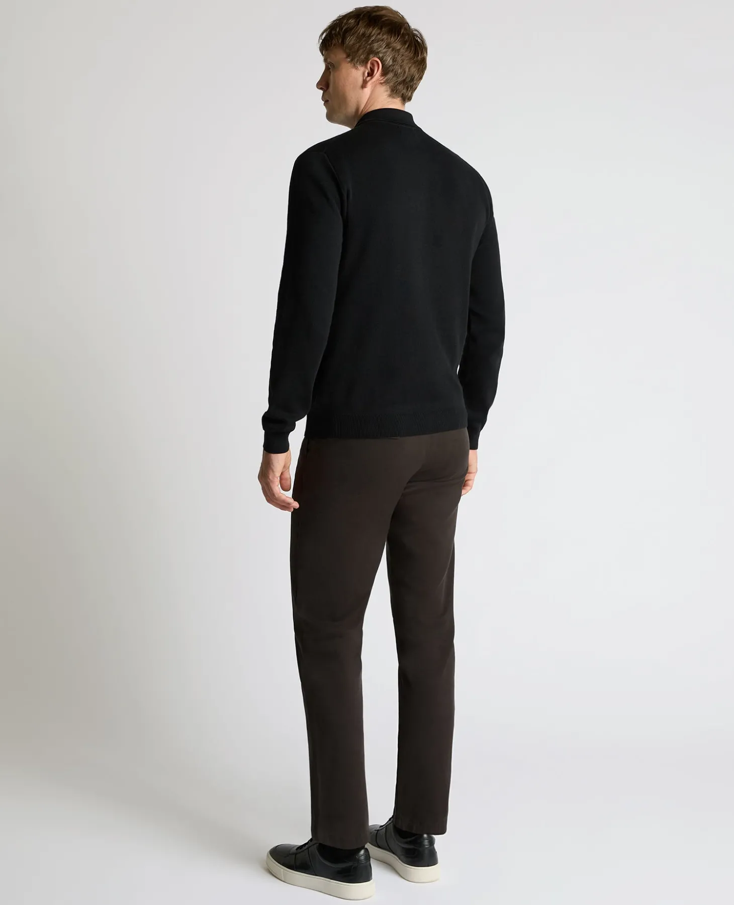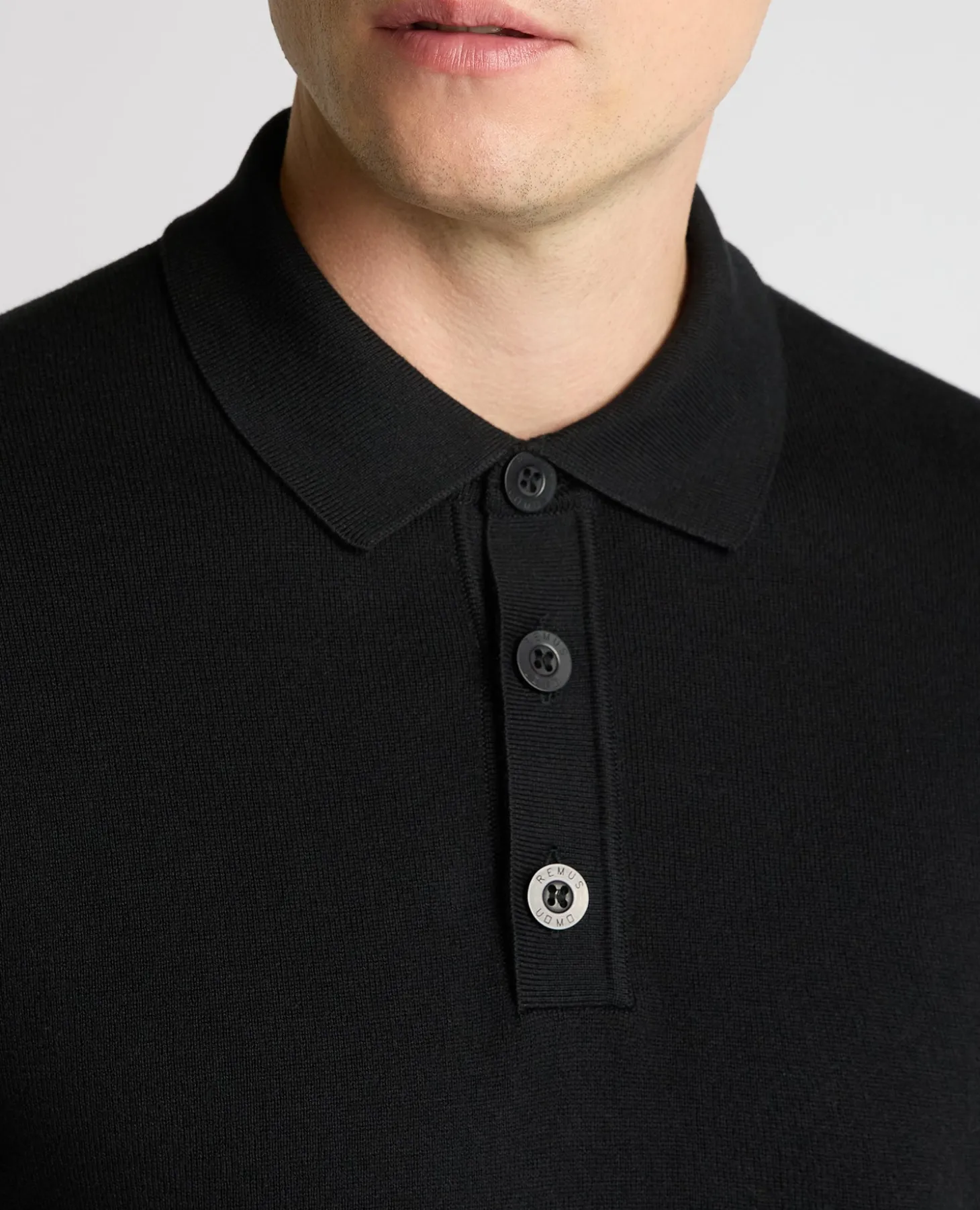 Model is 6’2”/188cm tall and wears a tapered fit long sleeve polo shirt in size M. Model has a 15.5 inch collar, a 40” chest and 32” waist.