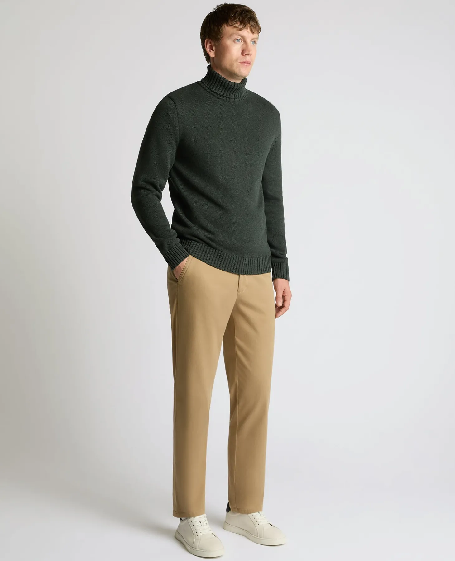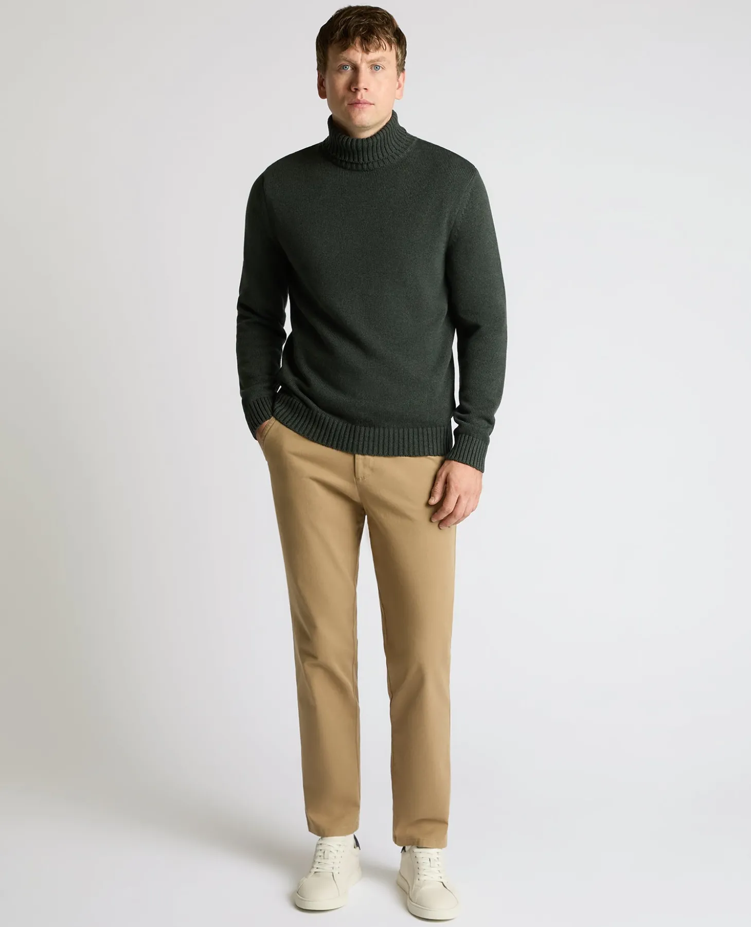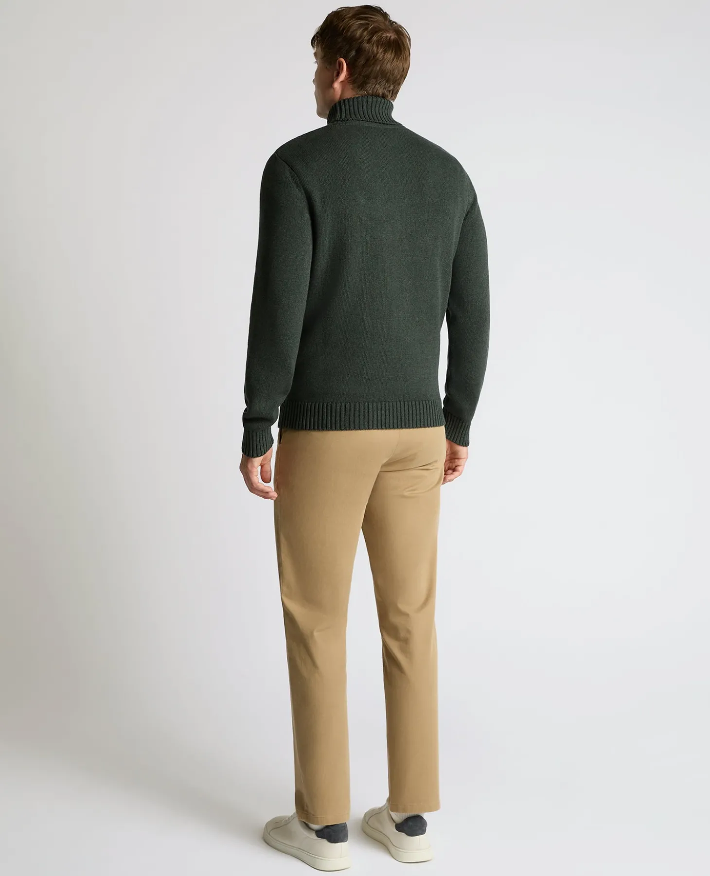 Model is 6’2”/188cm tall and wears a tapered fit sweater in size M. Model has a 15.5 inch collar, a 40” chest and 32” waist.