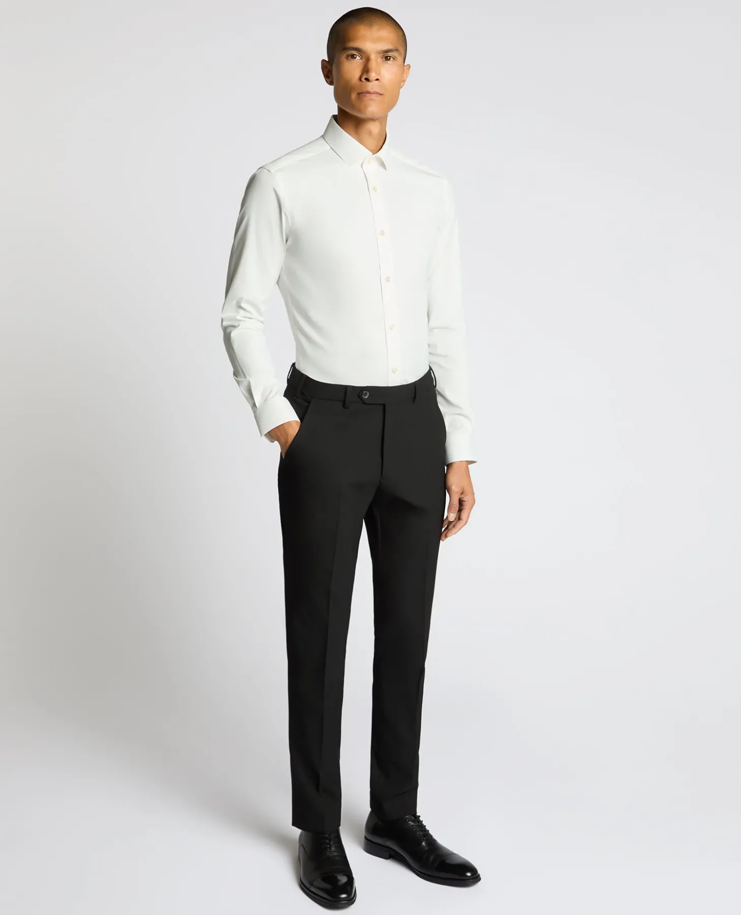 Clean, easy and designed to move with you, this is the kind of shirt you ll reach for when you want to look pulled together without compromising on comfort. Finished with a classic Kirk collar and a crisp French front, it works just as well under tailoring as it does worn open with chinos or denim.