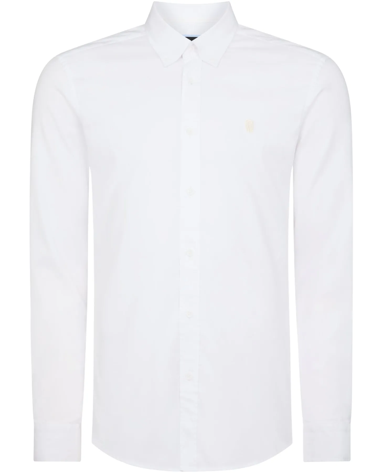 Model is 6’2” /188cm tall and wears a slim fit shirt in size M. Model has a 15.5 inch collar, a 40” chest and 32” waist.