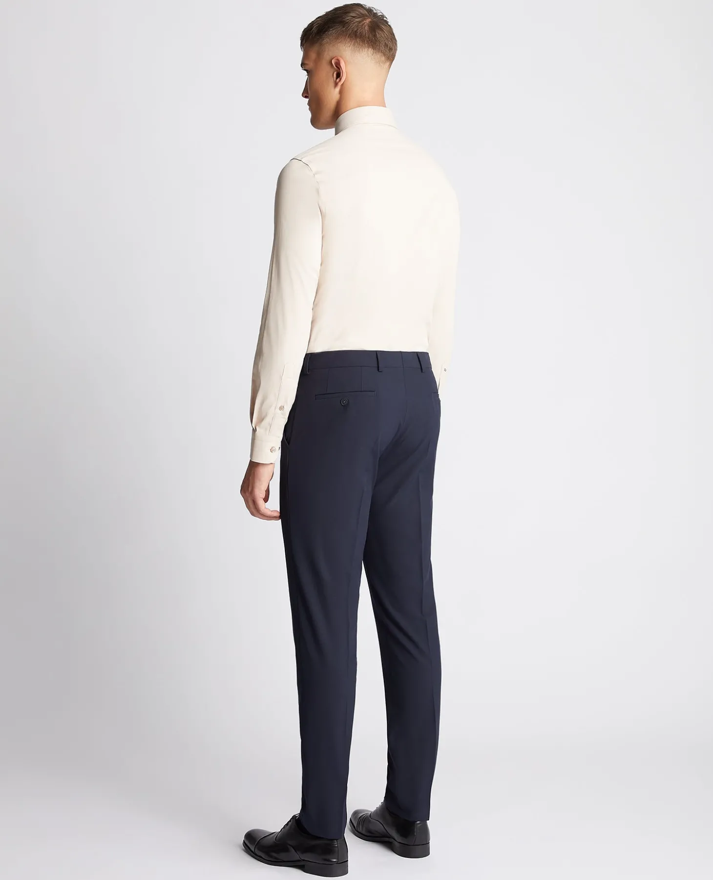 Beige slim fit cotton stretch long-sleeved shirt with french front and spread collar.