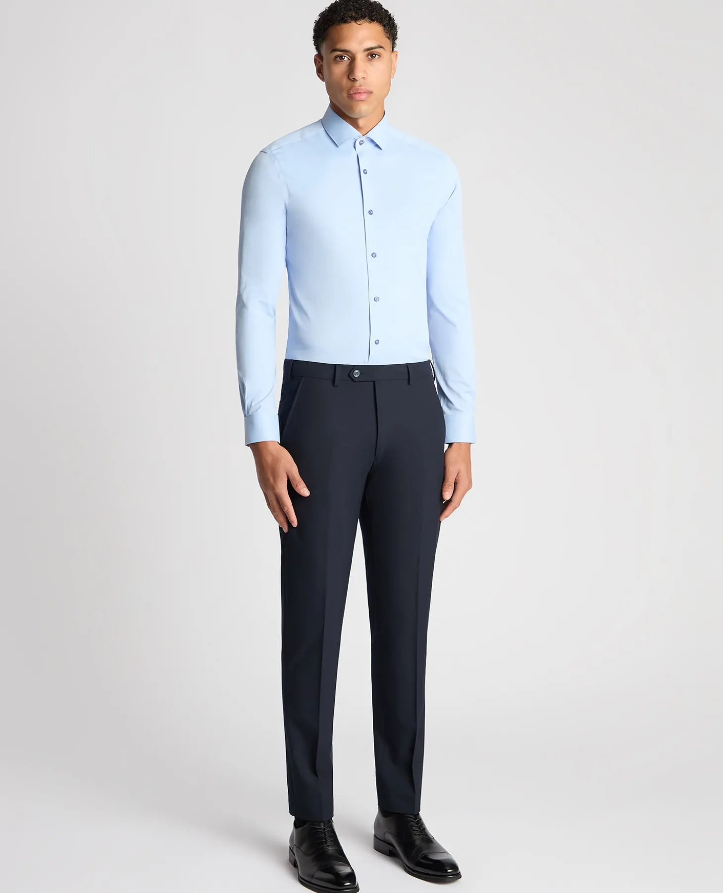 Clean, easy and designed to move with you, this is the kind of shirt you ll reach for when you want to look pulled together without compromising on comfort. Finished with a classic Kirk collar and a crisp French front, it works just as well under tailoring as it does worn open with chinos or denim.
