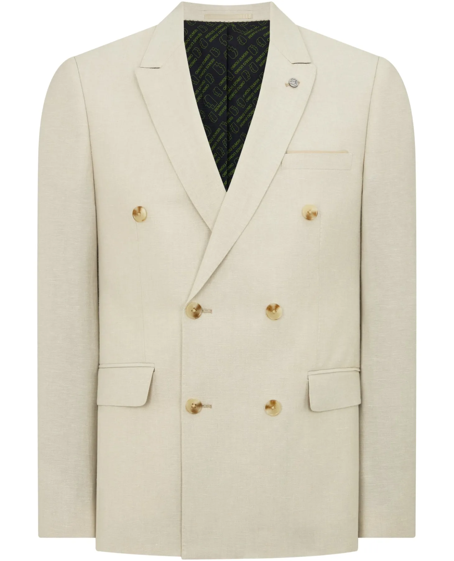 Slim Fit Linen-Blend Double Breasted Suit