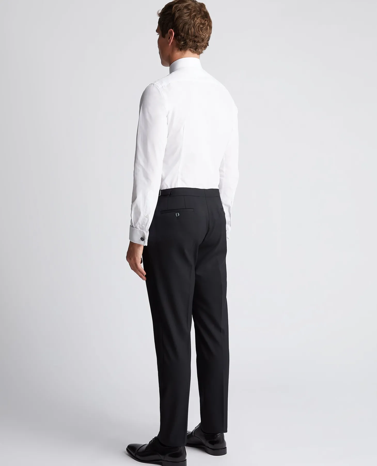 Model is 6’2” /188cm tall and wears a trouser size 34R. Our slim fit trousers are expertly tailored to create the perfect slim silhouette, designed for a narrower appearance through the leg and at the hem.