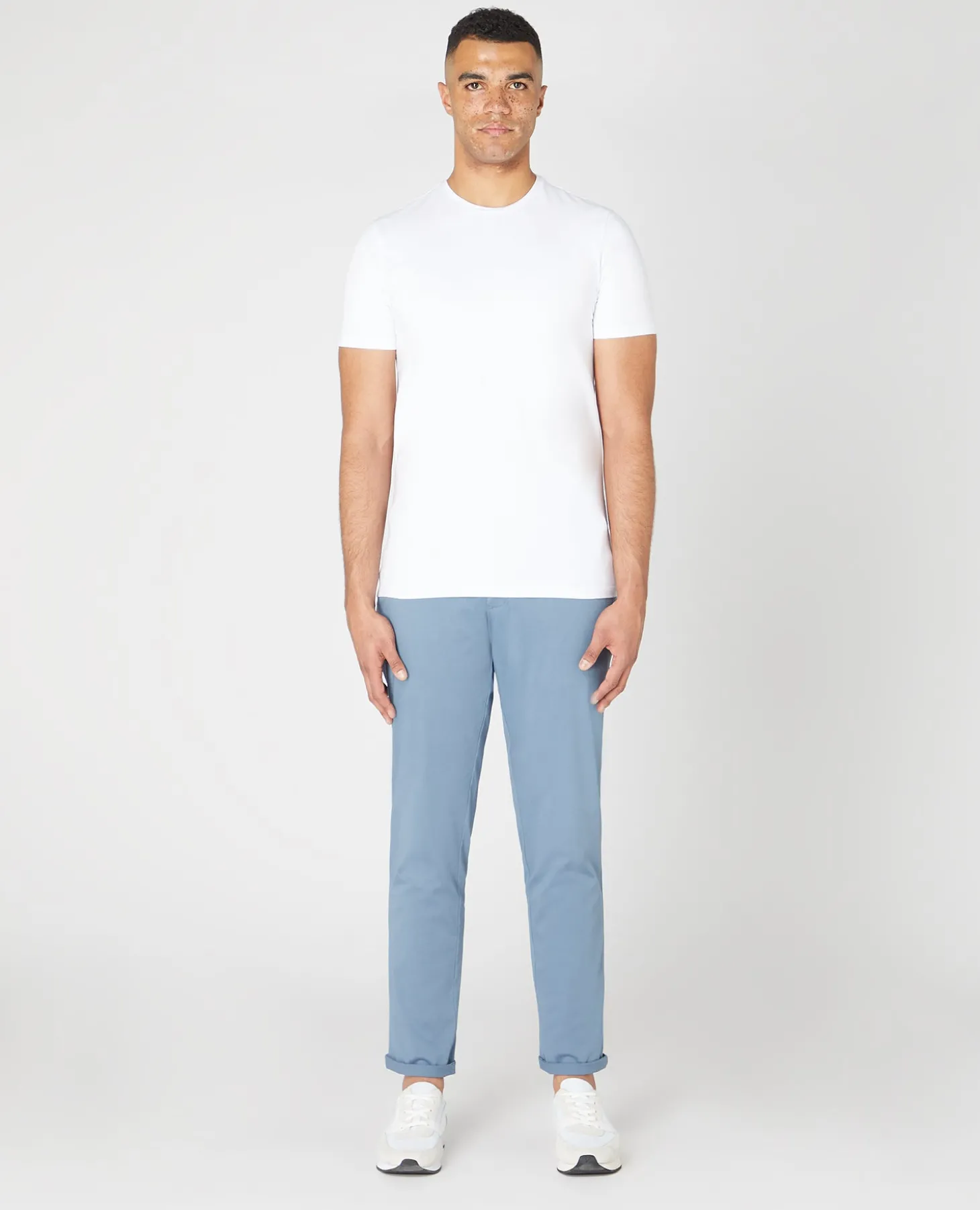 Model is 6’2” / 188cm tall and wears a slim leg chino, size 34R. Our slim leg chinos are designed to create the perfect slim silhouette with narrower profile through the leg and at the hem.
