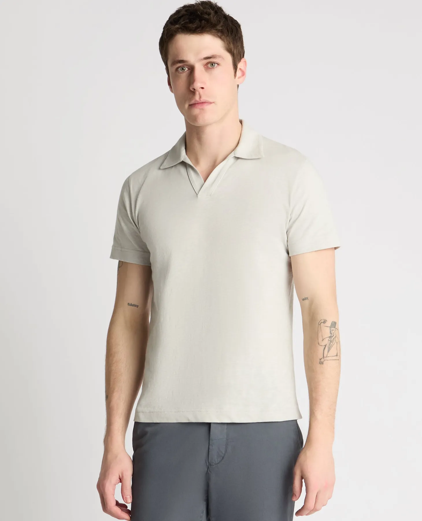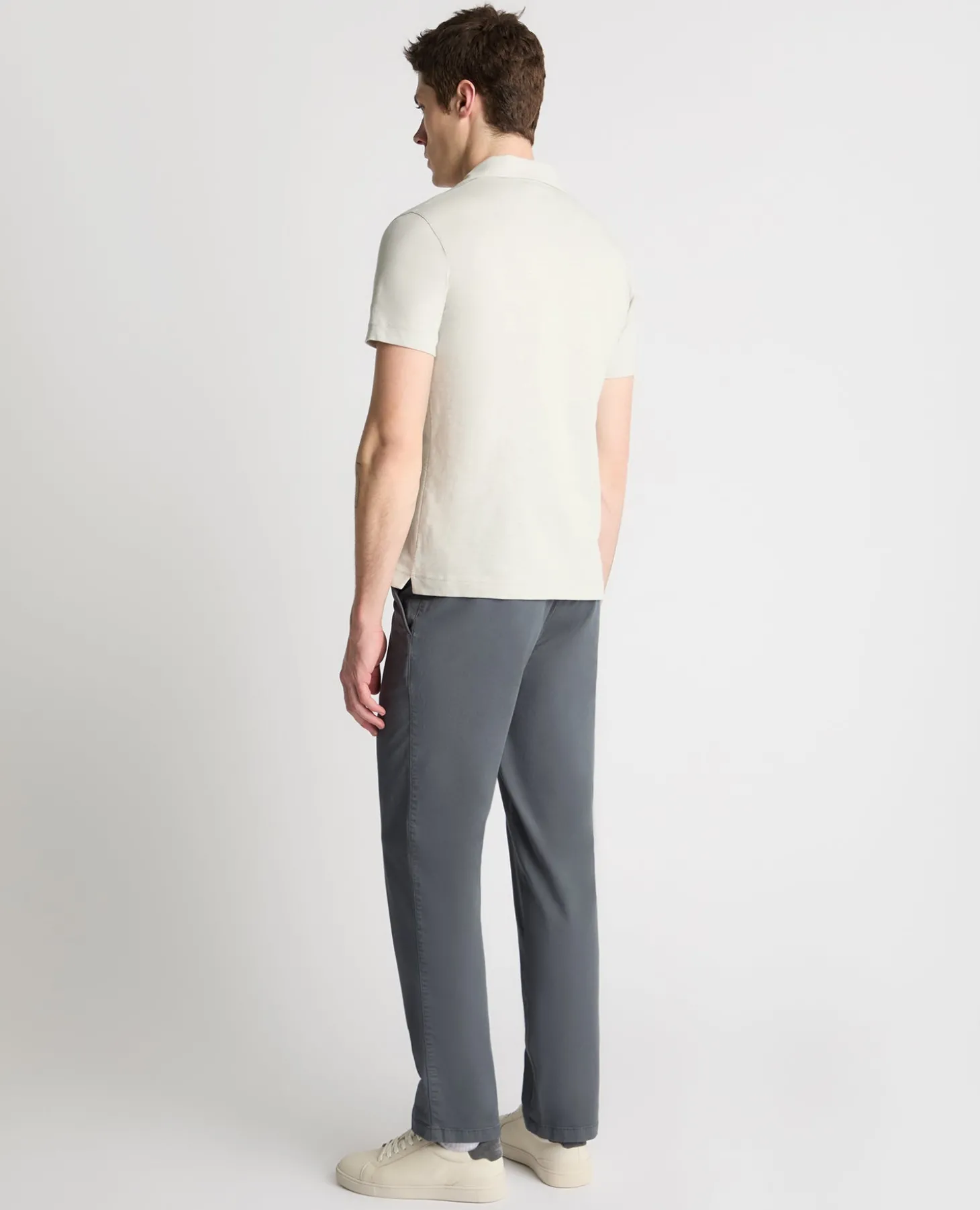 Model is 6’2”/188cm tall and wears a slim fit polo shirt in size M. Model has a 15.5 inch collar, a 40” chest and 32” waist.