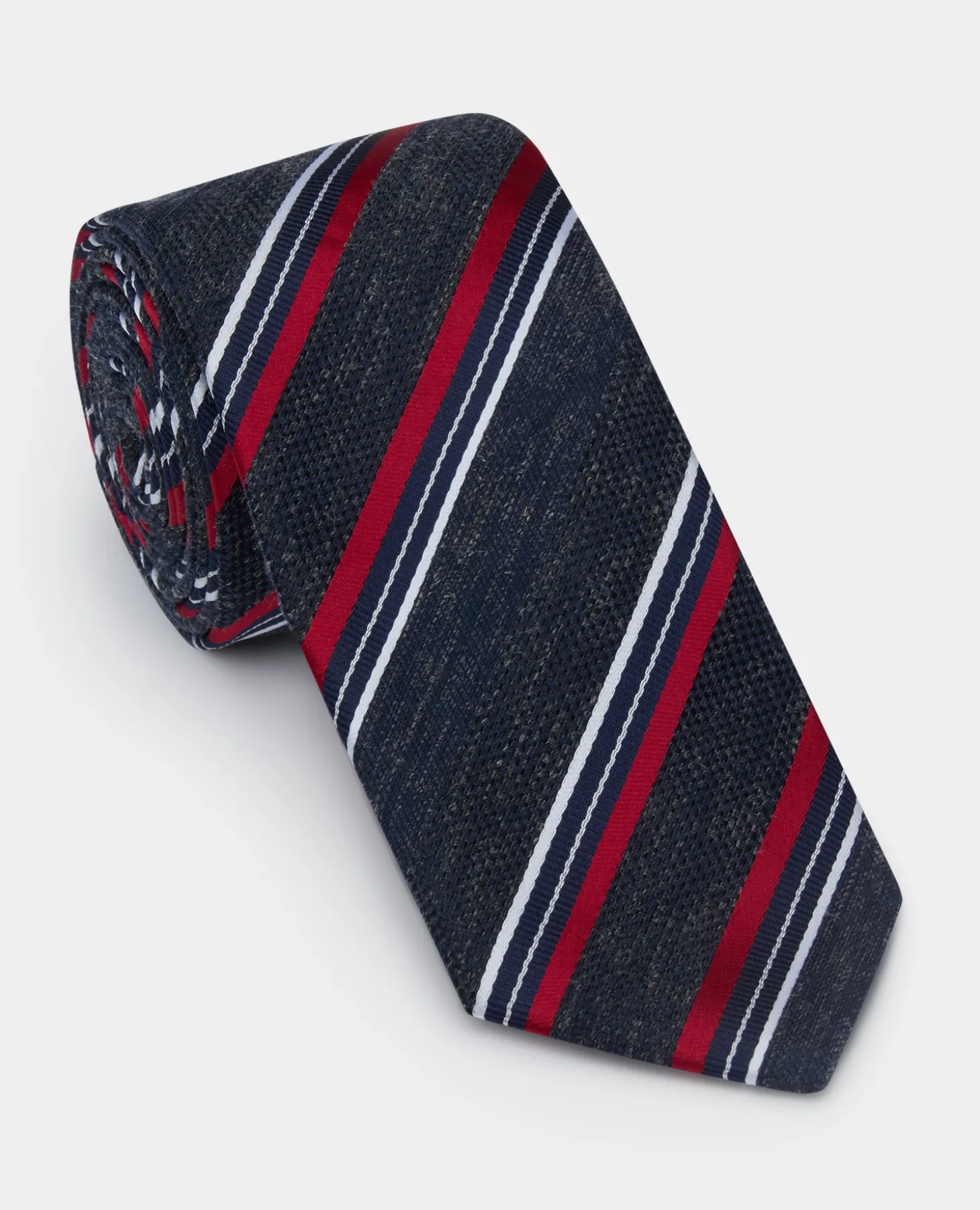 Navy, red and white stripe design tie