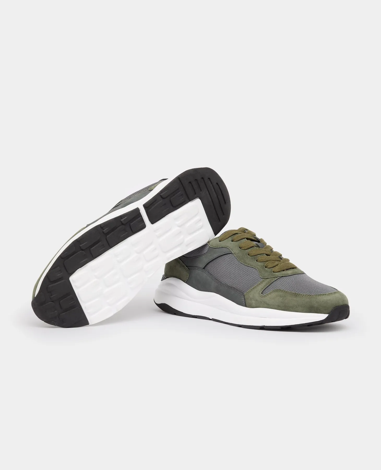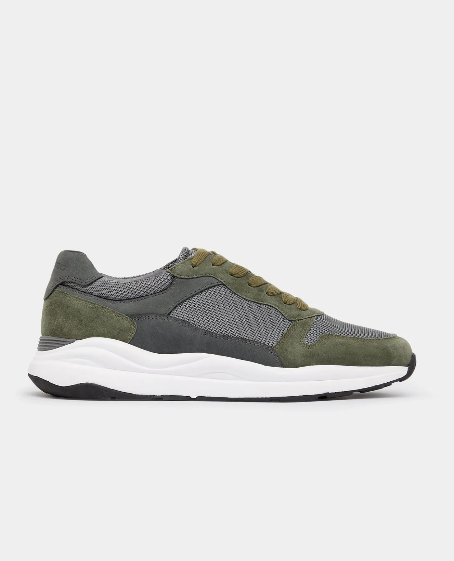 Khaki Albi trainer designed with suede and leather detailing. Closed lacing with 6 eyelets, branded heel tab and rubber sole.