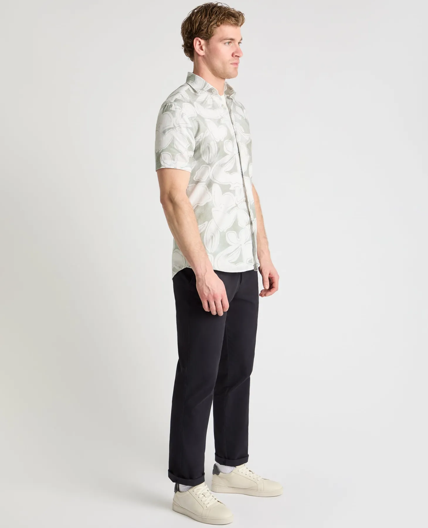 Floral print, done right. This abstract print shirt brings a hit of warm-weather energy while still staying easy to style. Crafted from pure cotton, it ll keep you cool and fresh all day long, a solid choice for lunches out, relaxed afternoons, and evenings that roll on that bit longer.