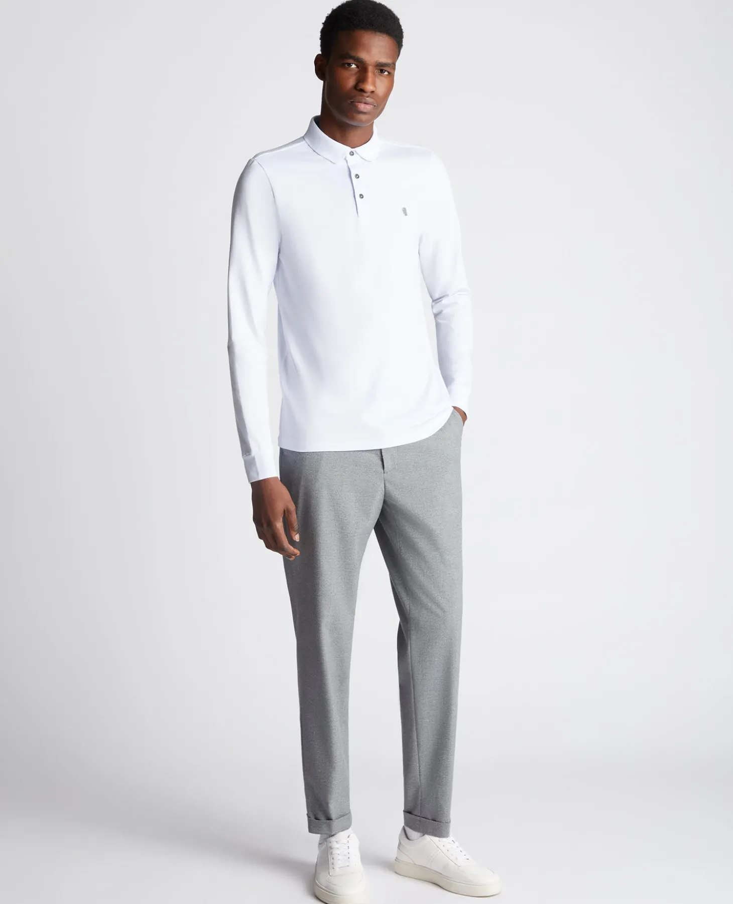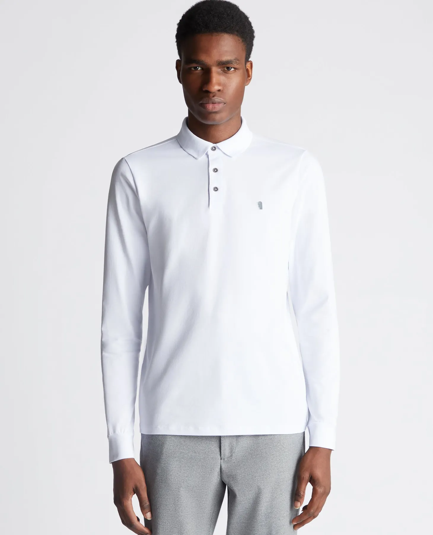 White tapered fit cotton-blend long seeve polo shirt