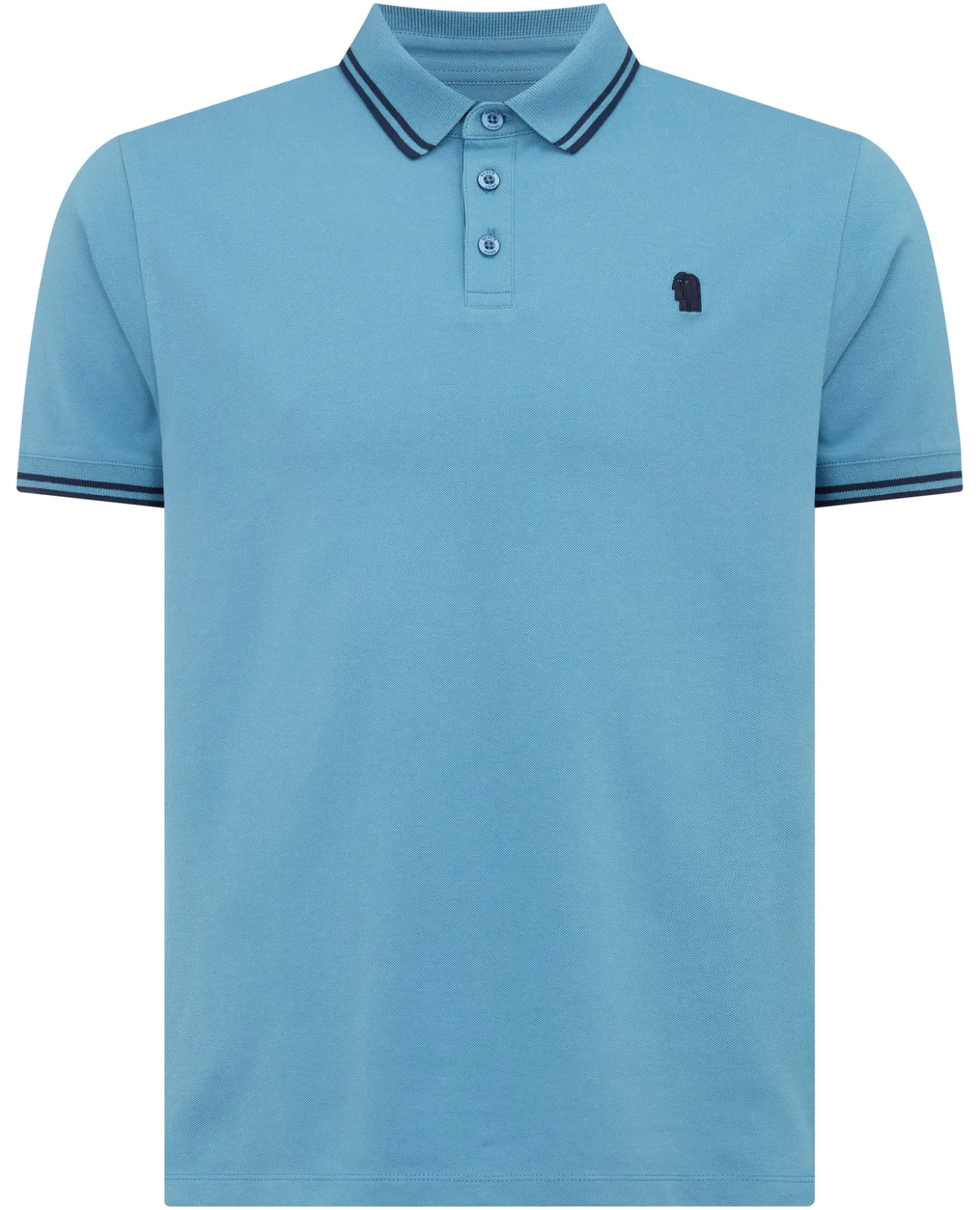 Blue tapered fit cotton-stretch 3 button pique polo shirt with embroidery on the chest and feature navy tipping on the collar and cuff.