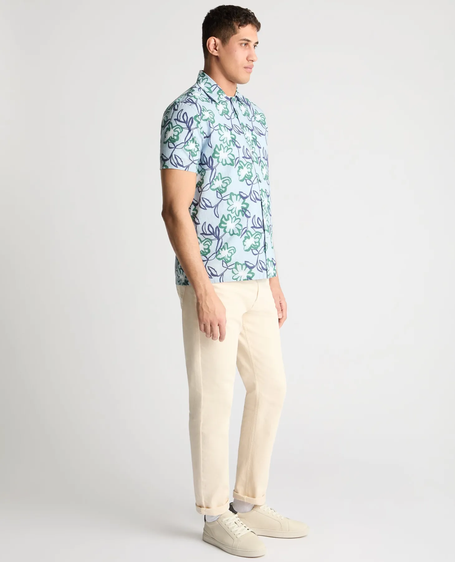 A grown-up take on the Hawaiian shirt. This floral print brings the warm-weather energy, while the tapered fit and clean finish keep it looking tidy rather than touristy. Crafted from 100% cotton, it s lightweight and comfortable, even when the heat s on. Wear it buttoned up with chinos for drinks or throw it on with shorts when heading to the beach.