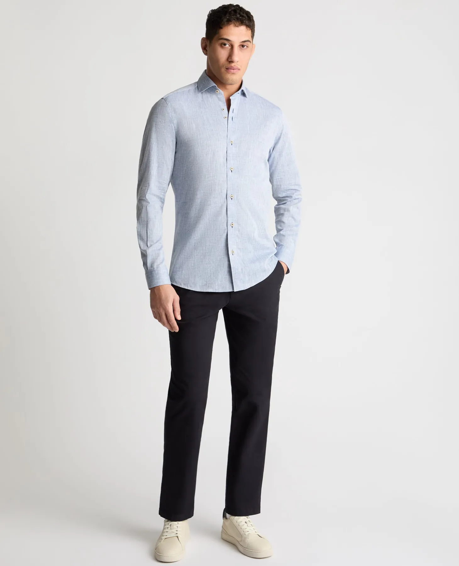 When the temperature rises, this is the shirt you ll want on rotation. Crafted from a breathable cotton-linen blend, it feels light against the skin and helps you stay cool without sacrificing shape or style. An easy choice for your workday, and just as reliable once plans roll into the evening.
