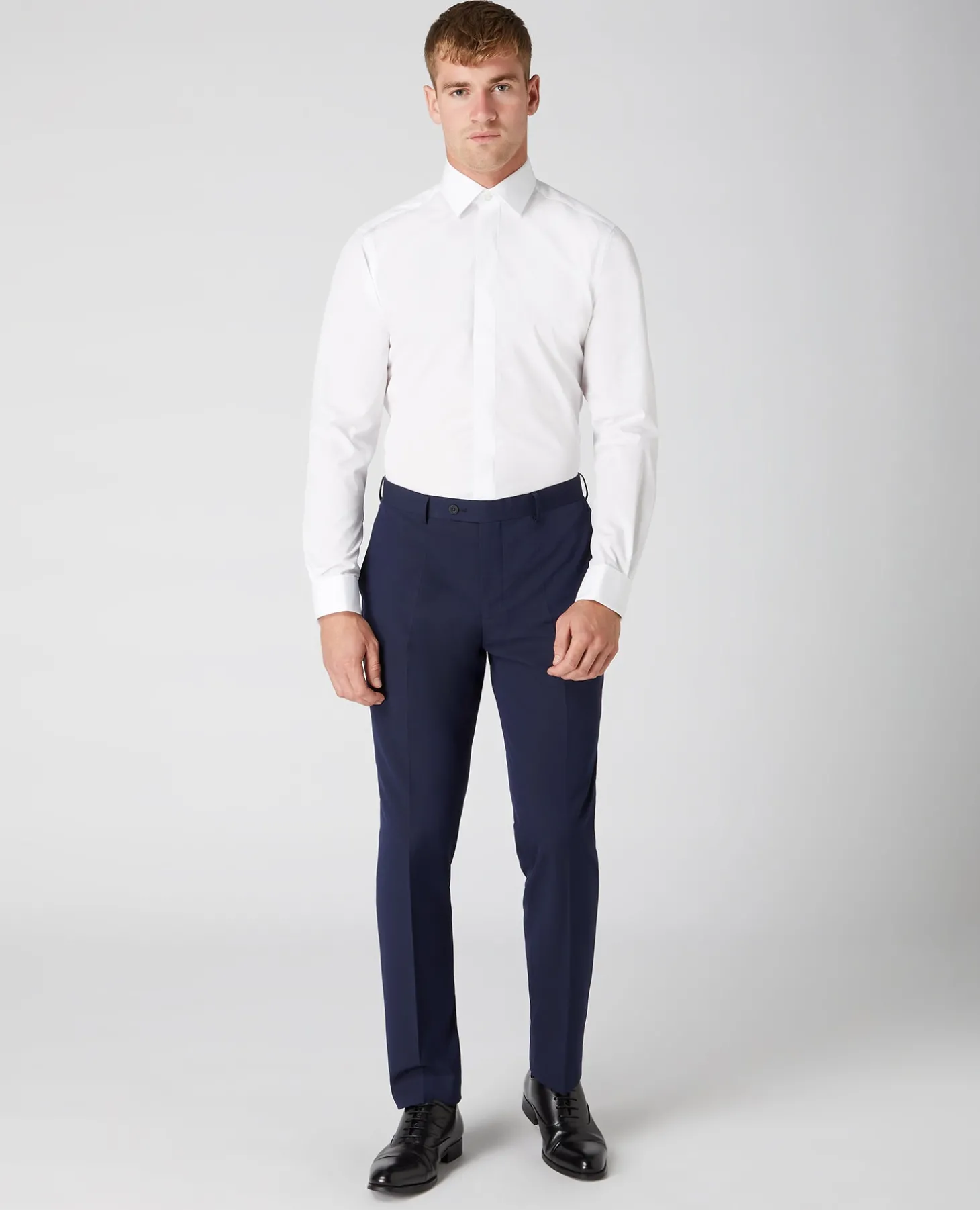Clean lines, zero distractions. This tapered fit shirt keeps things refined with a concealed front and double cuffs. Cut from a smooth cotton-blend, it s built to hold its own when the occasion calls for something properly put together, without the fuss.