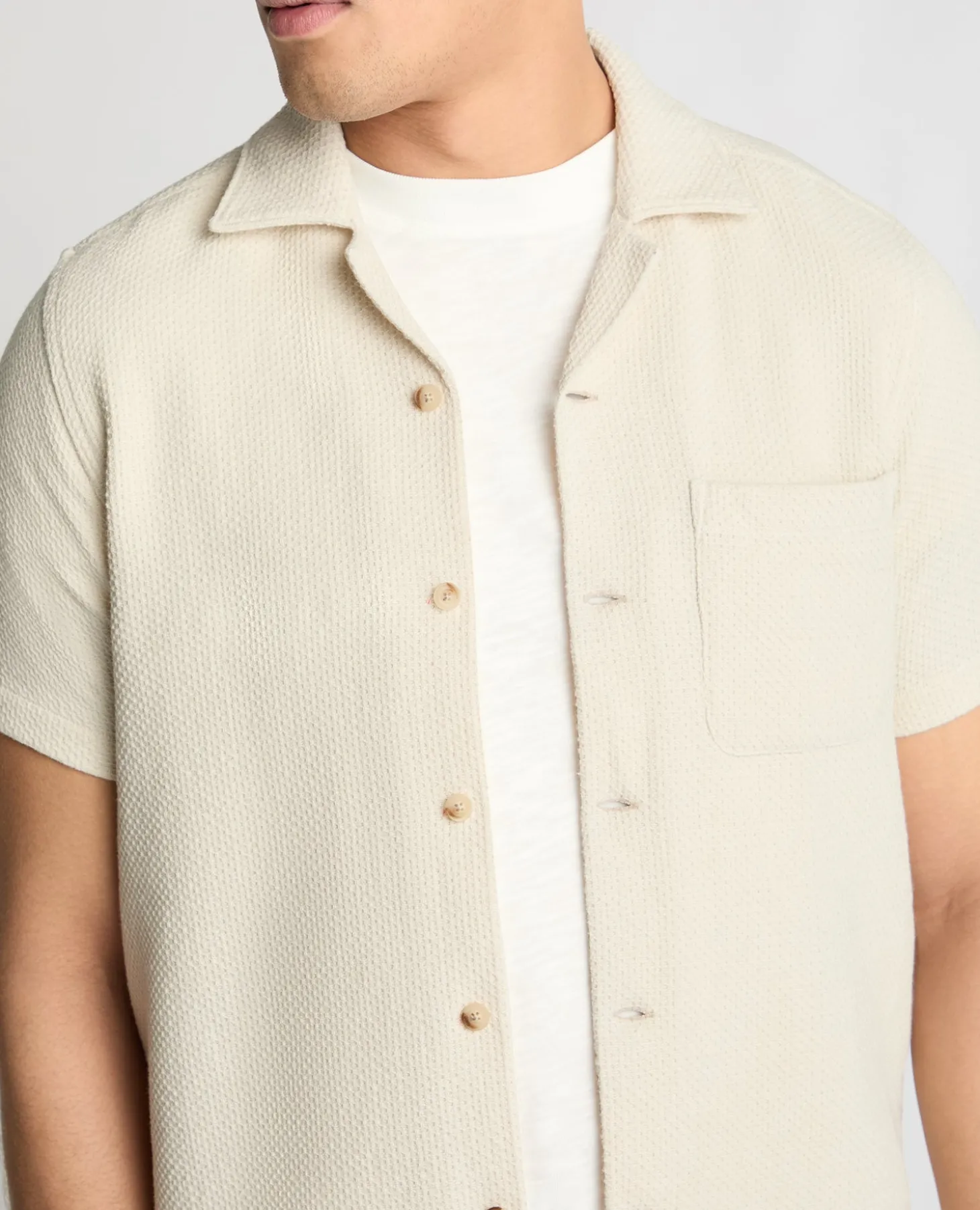 The honeycomb texture adds personality, while the clean shape keeps it easy to wear. It works just as well buttoned up as it does worn loose, just pair with shorts or your favourite pair of jeans to complete the look.