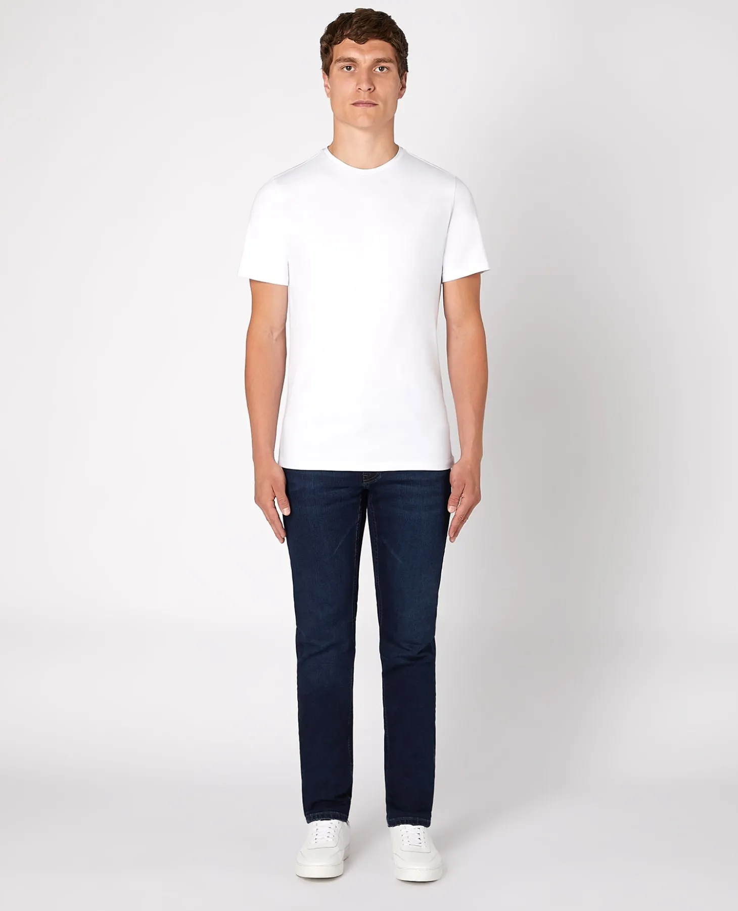 Model is 6’2” /188cm tall and wears a slim leg jean, size 34R. Our slim fit jeans are designed to create the perfect slim silhouette with narrower profile through the leg and at the hem.