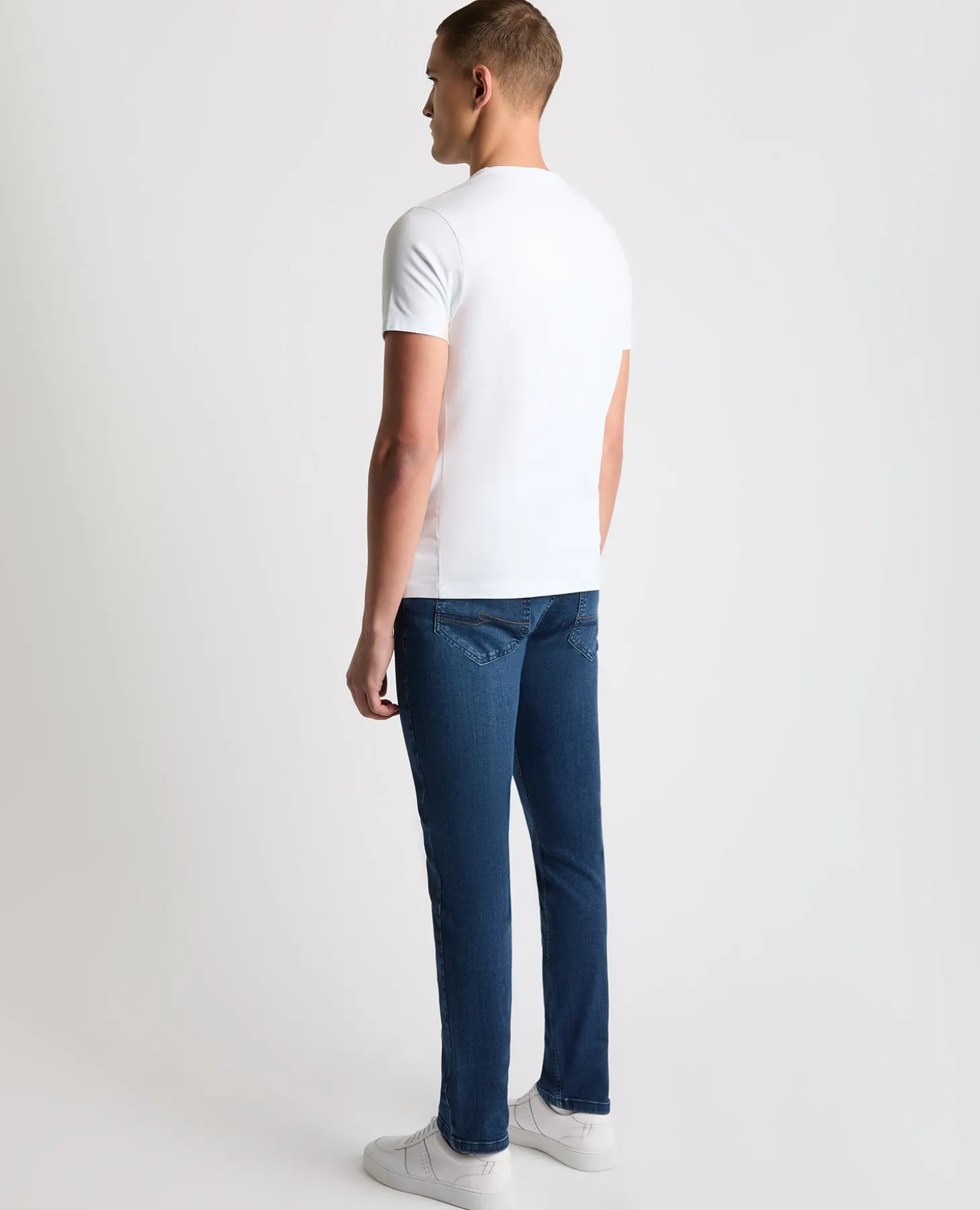 Model is 6’2” /188cm tall and wears a slim leg jean, size 34R. Our slim fit jeans are designed to create the perfect slim silhouette with narrower profile through the leg and at the hem.