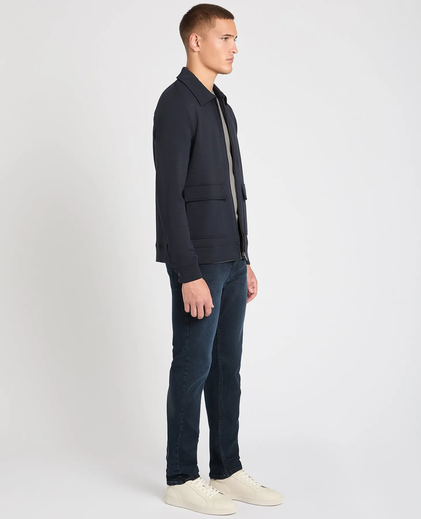 Navy slim fit cotton-stretch long sleeve pique polo with chest embroidary, contrast tipping on the collar and three button closing. If you prefer an easier fit , we recommend sizing up for this garment.
