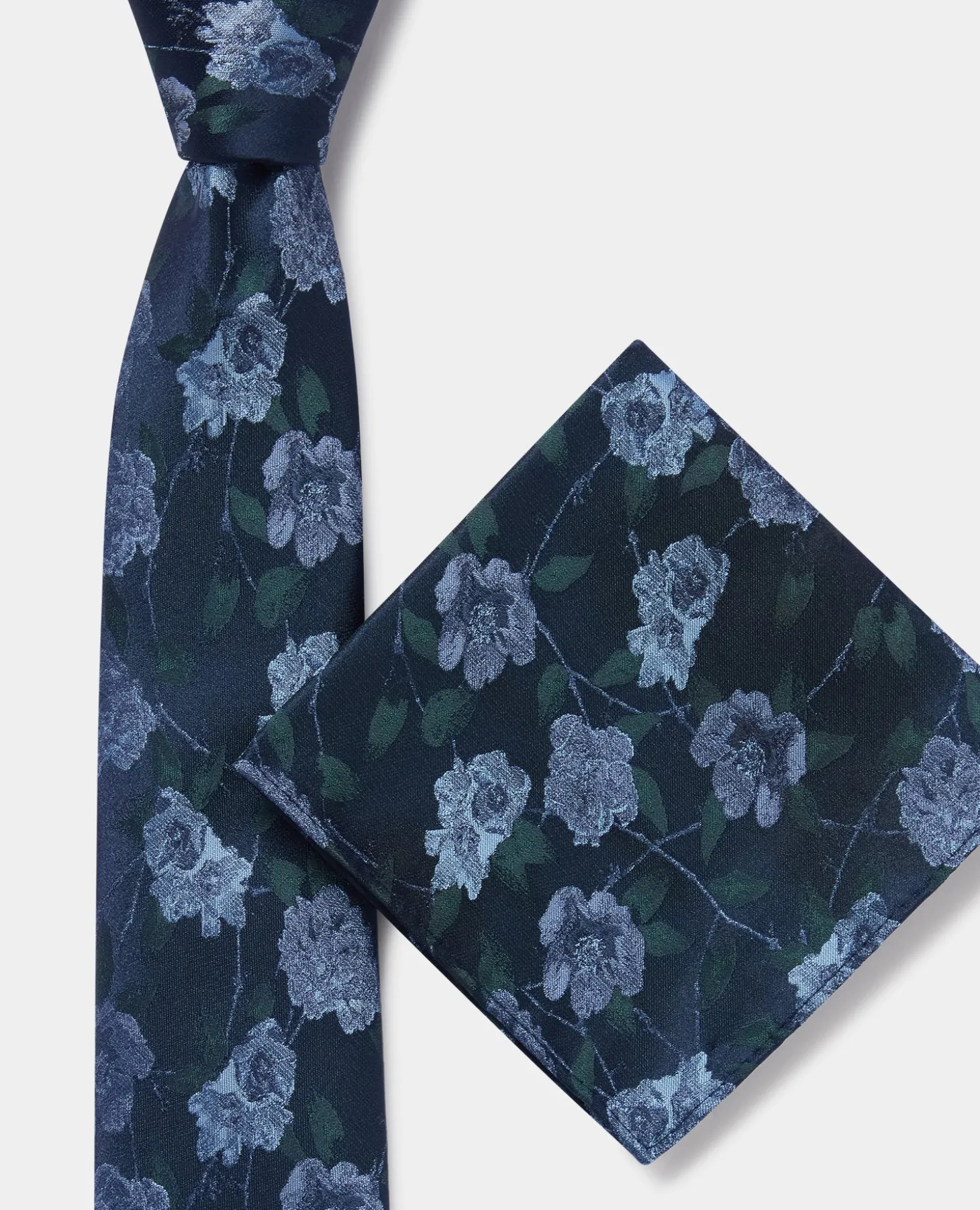 With a solid base and delicate floral detailing, this tie brings subtle character to your look without stealing the show. Paired with the matching pocket square, it’s an effortless way to add a touch of personality to any outfit.