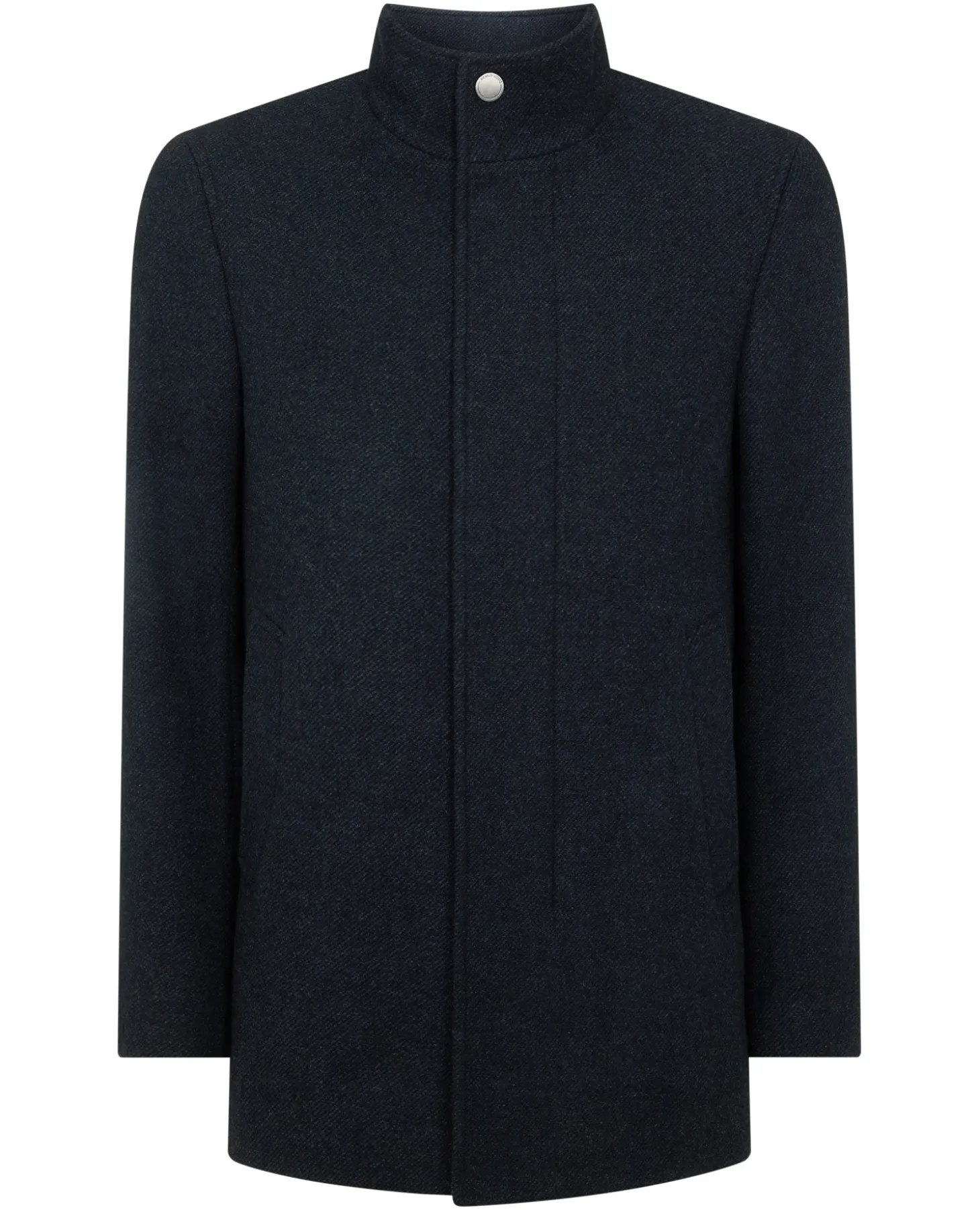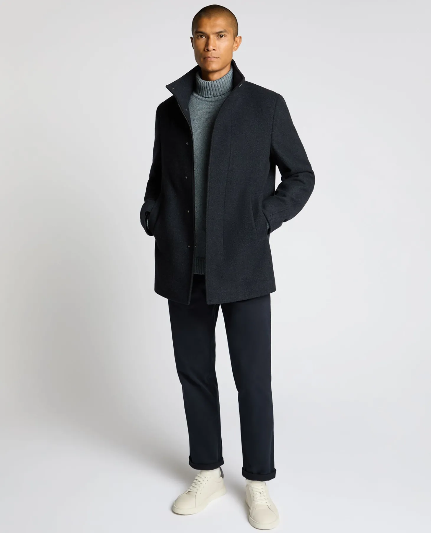 Model is 6’2” /188cm tall and wears a tapered fit overcoat, size 40. Our tapered fit is a more generous cut with more room through the chest and arm, while still maintaining a tailored silhouette.