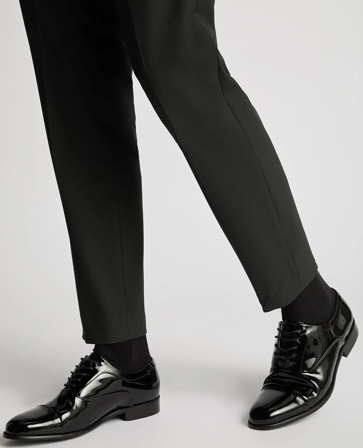 Prato patent leather Oxford shoe in black. Toe cap. Lace fastening with 5 eyelets. Synthetic welt and sole with stitching detail. Leather sock and lining.