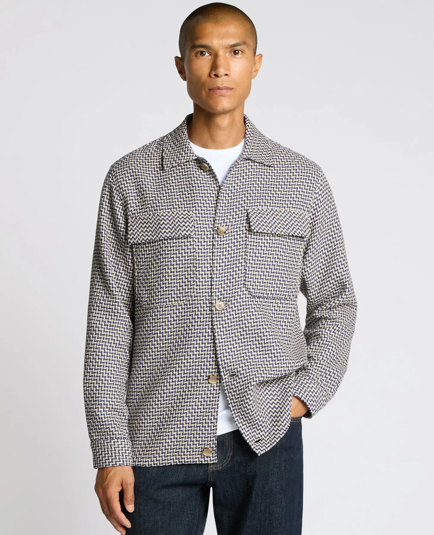 – Double chest pocket with concealed buttoned flaps
