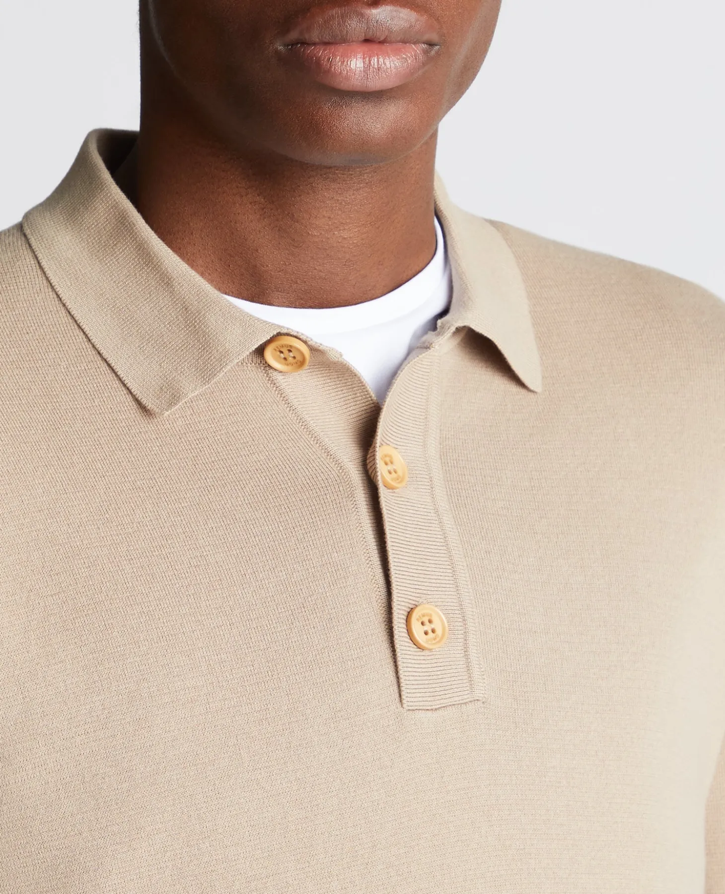 Sand long sleeve 3 buttoned polo in all over half milano structure with a super soft stretch.