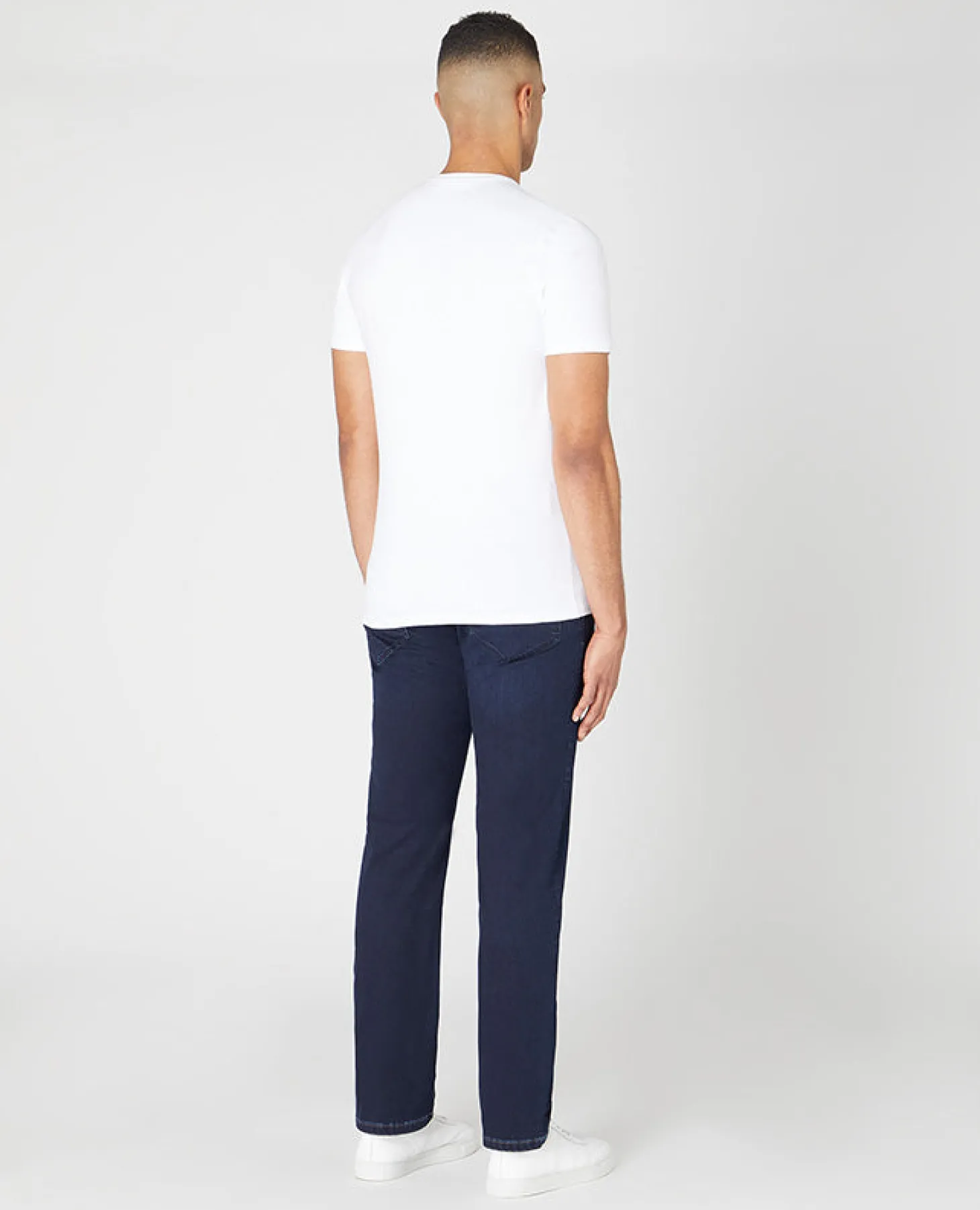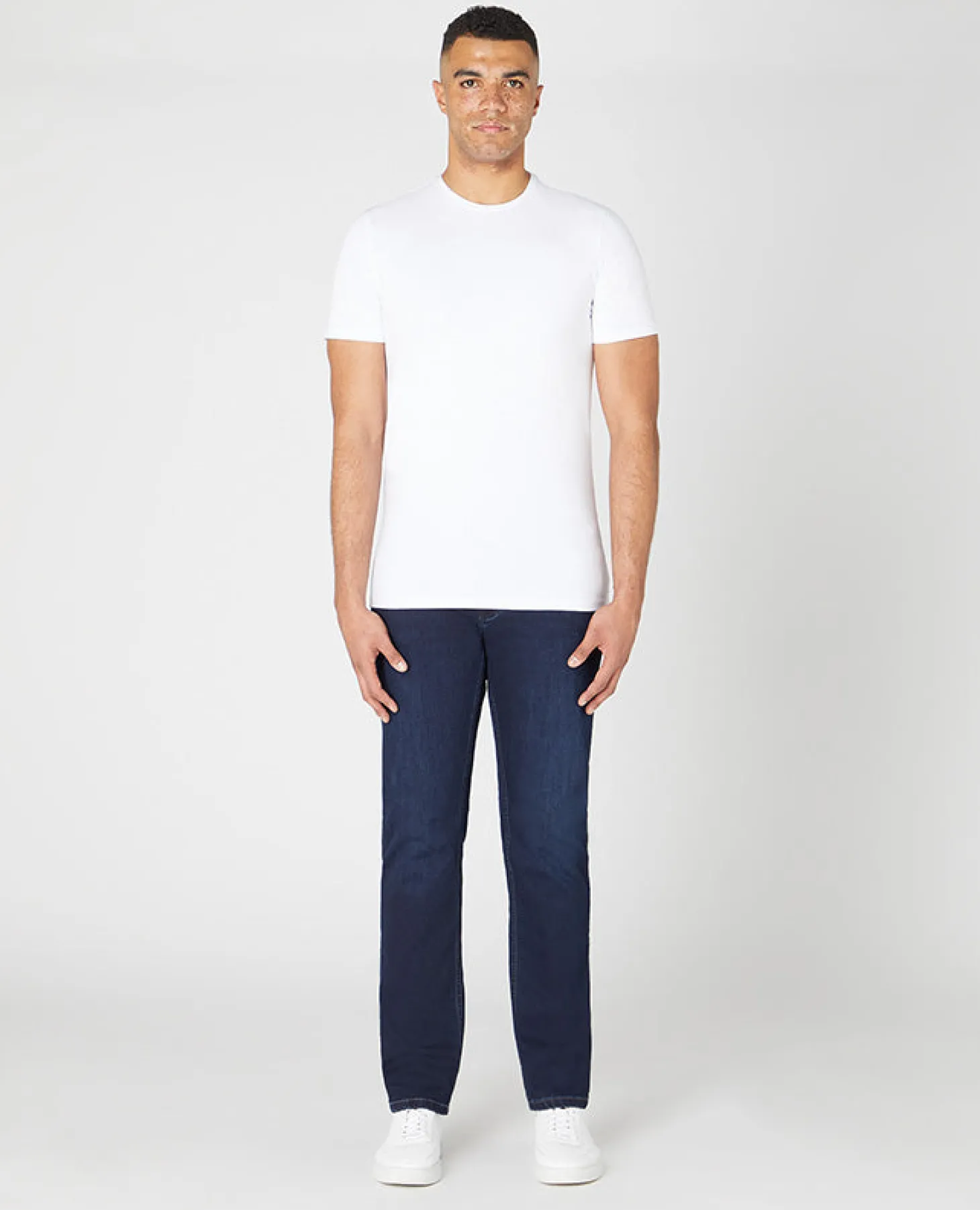 Navy straight leg cotton-stretch jeans in a clean finish. Our Power Stretch denim range is engineered with performance stretch and designed for durability and comfort.