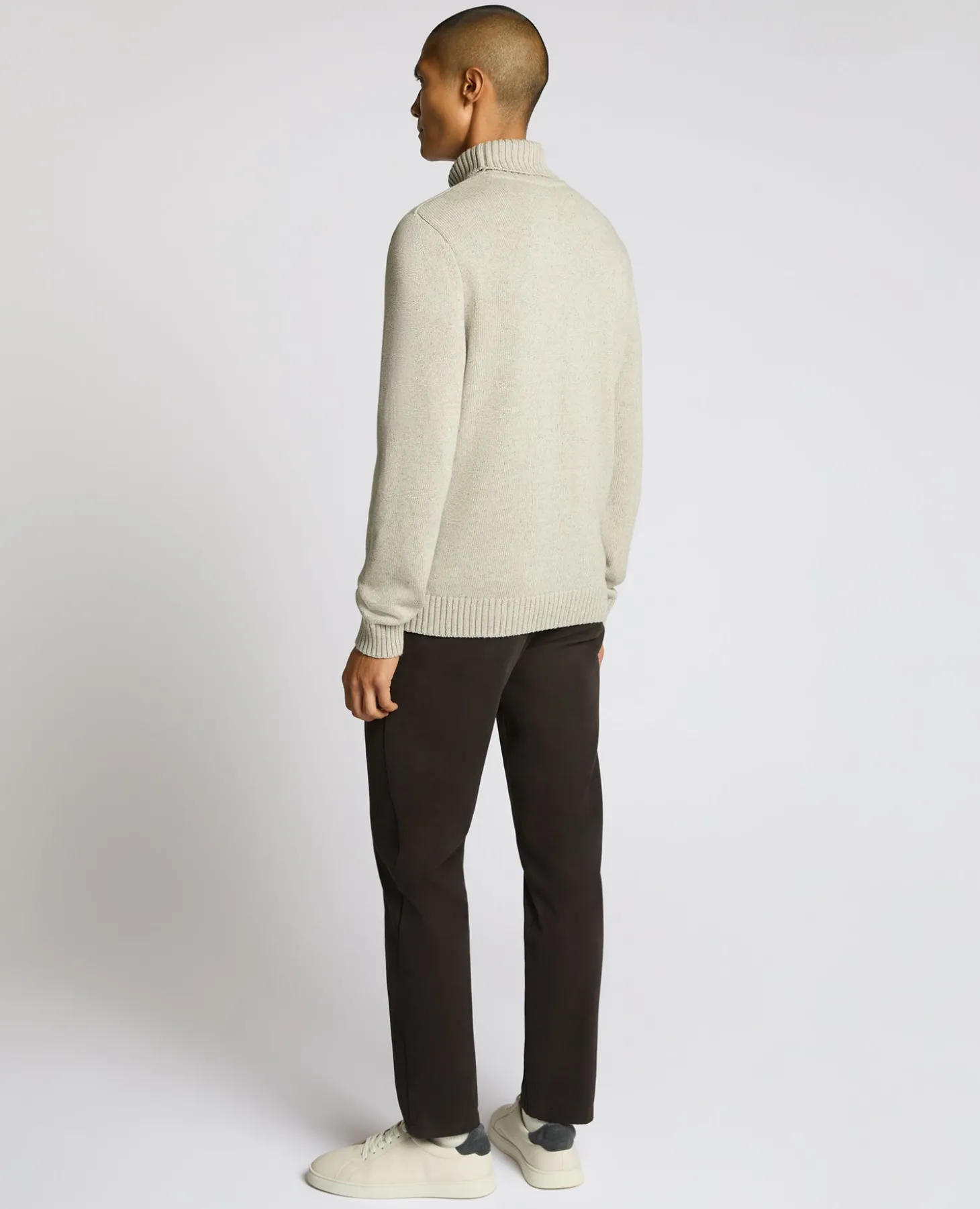 Model is 6’2”/188cm tall and wears a tapered fit sweater in size M. Model has a 15.5 inch collar, a 40” chest and 32” waist.