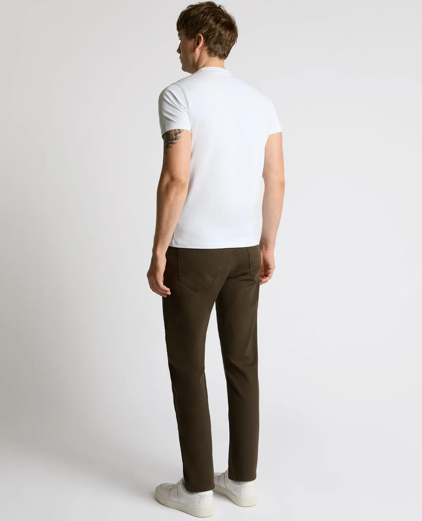 Model is 6’2” /188cm tall and wears straight leg jeans, size 34R. Straight leg is a more generous cut with more room through the seat, leg and at the hem.