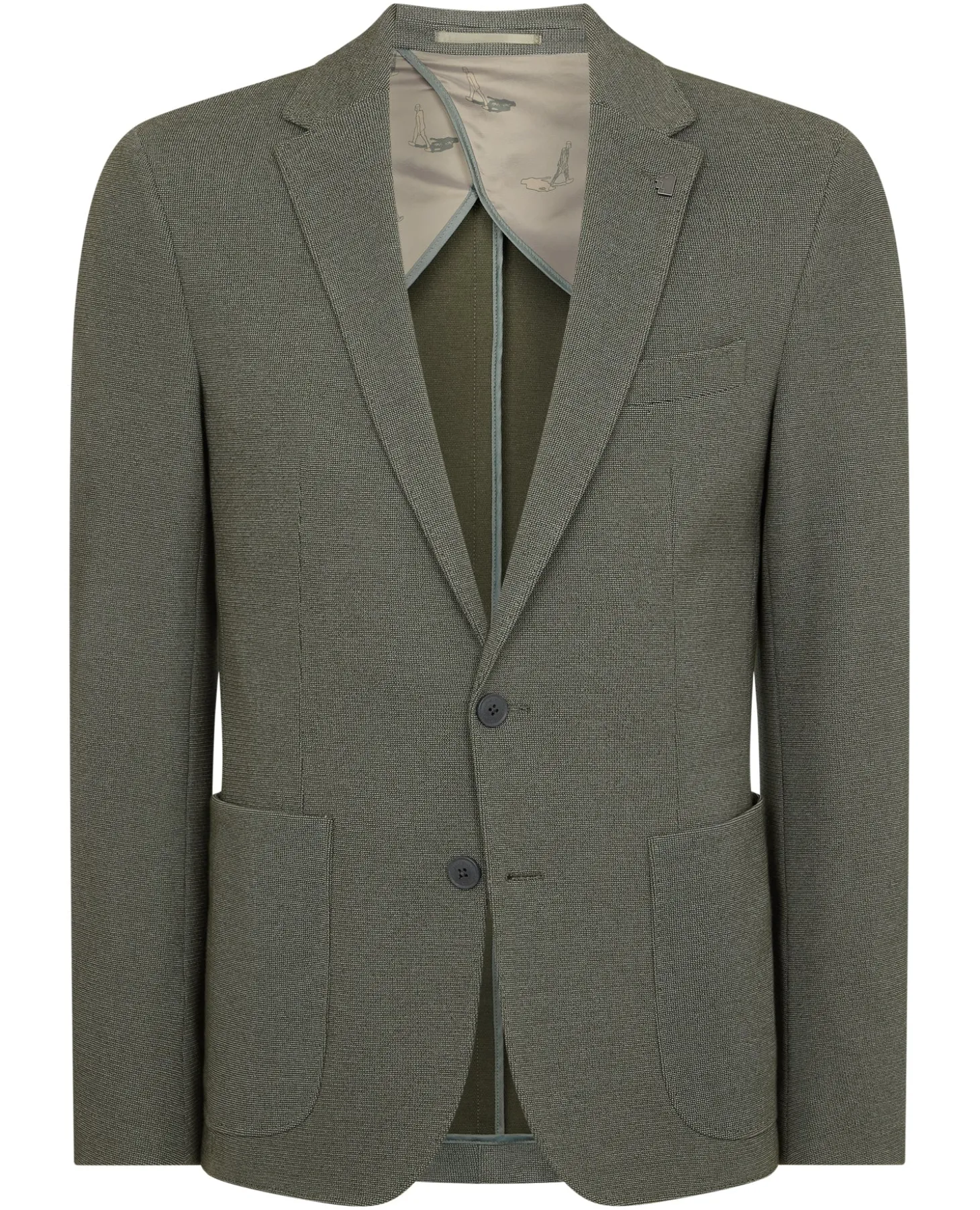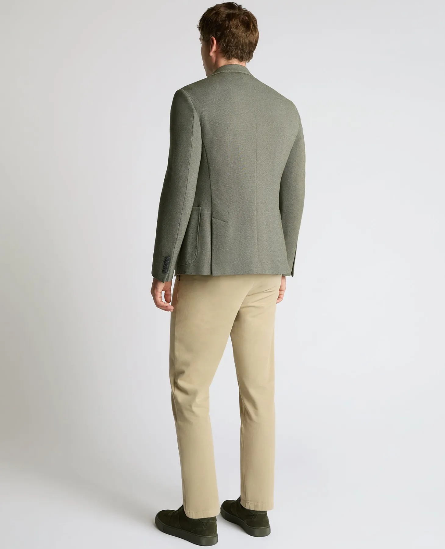 Model is 6’2”/188cm tall and wears a slim fit jacket, size 40R. Our slim fit jackets are expertly tailored to create the perfect slim silhouette, designed for a narrower appearance through the shoulders, arms and chest.