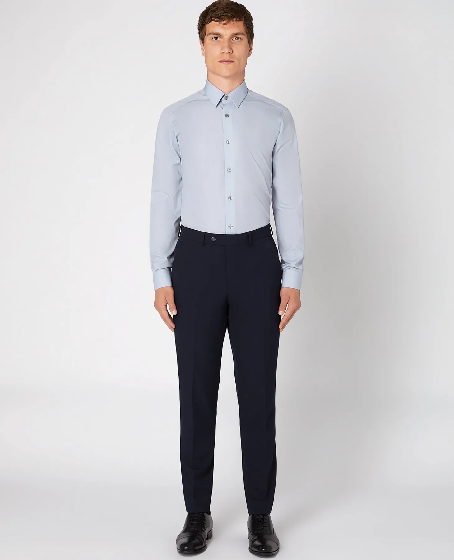 Grey slim fit cotton-blend long-sleeve shirt with french front and narrow pointed collar.
