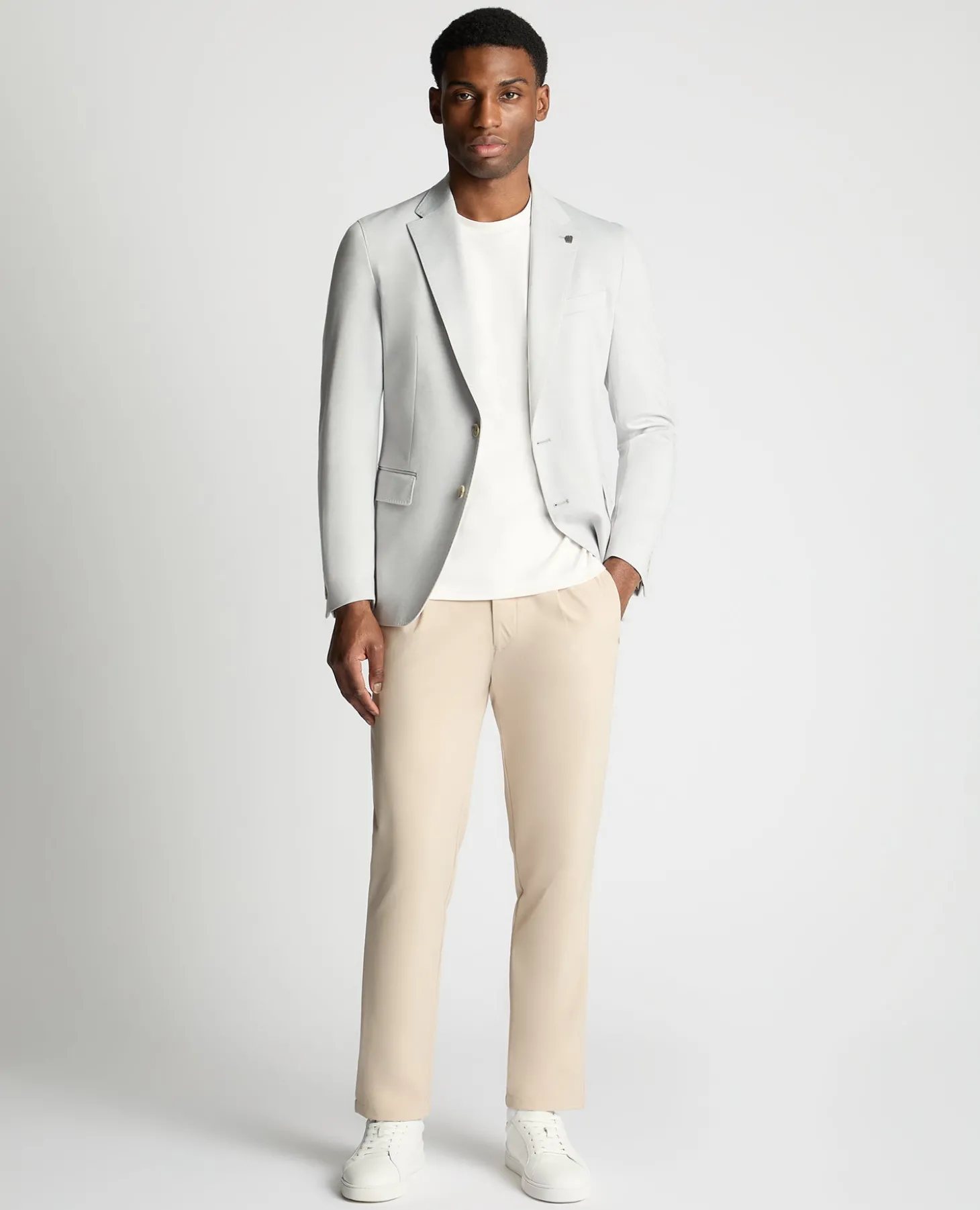 A smart layer designed for ease, not stiffness. This jacket, crafted from a soft stretch-blend fabric, moves comfortably with you throughout your day, making it an easy choice when you want to look pulled together without feeling restricted. Pair it with matching trousers for a coordinated look or wear it over a tee to keep things casual.