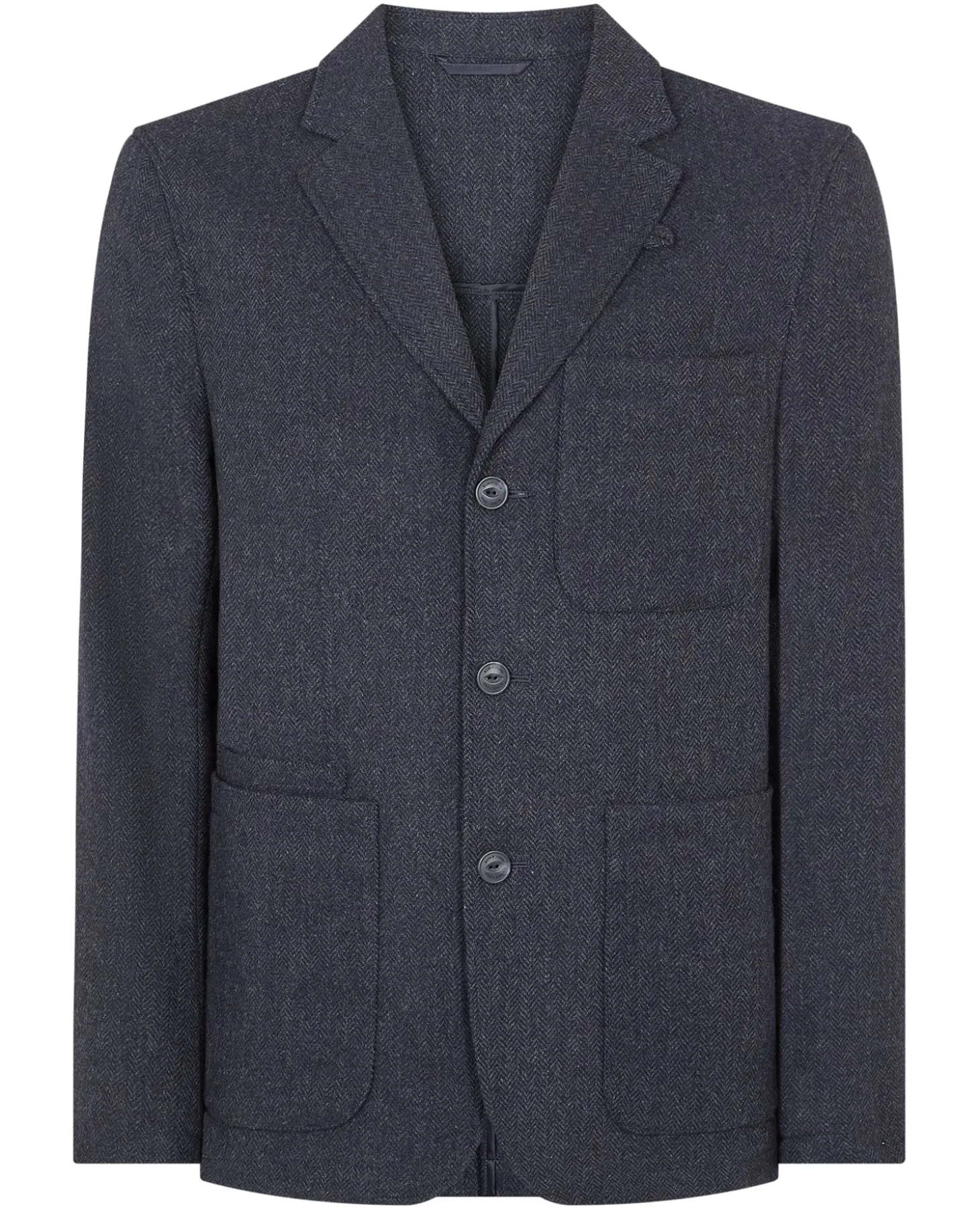 Dark blue slim fit wool-poly jacket with herringbone design dego