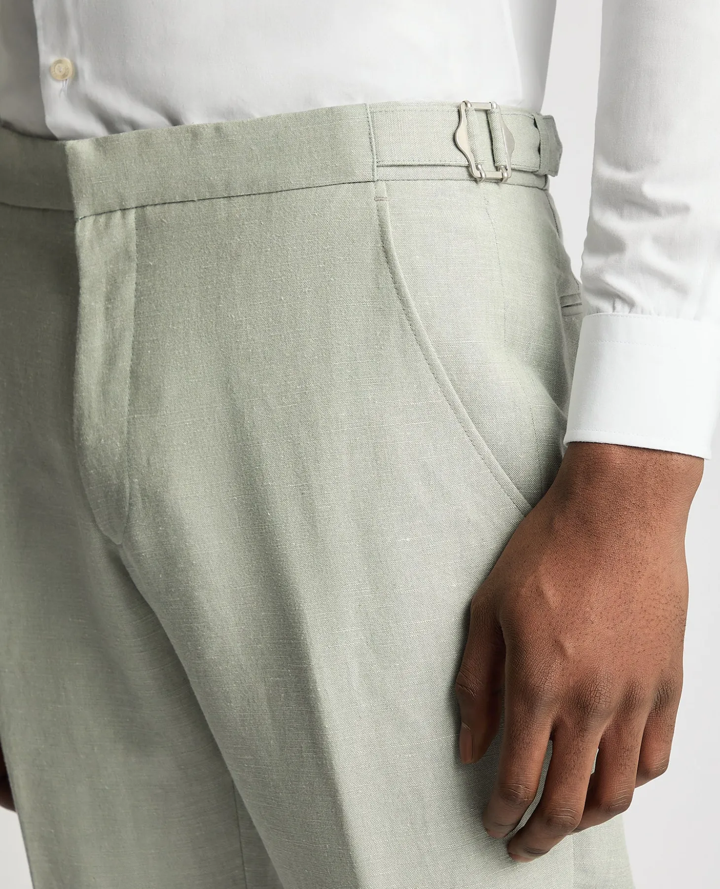 Dark blue slim leg linen-blend formal trousers with side adjuster. Matching suit jacket and waistcoat available: 4_12270