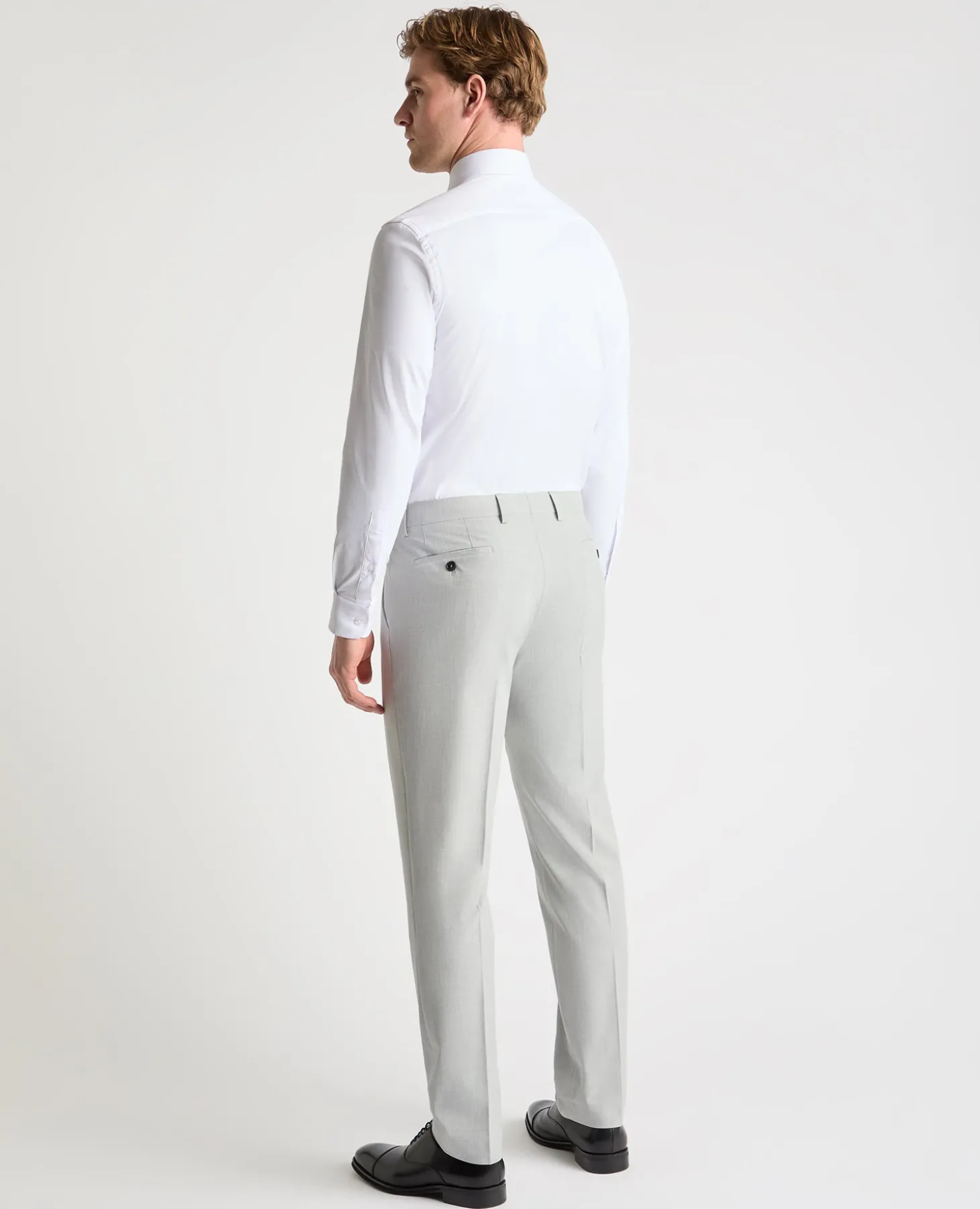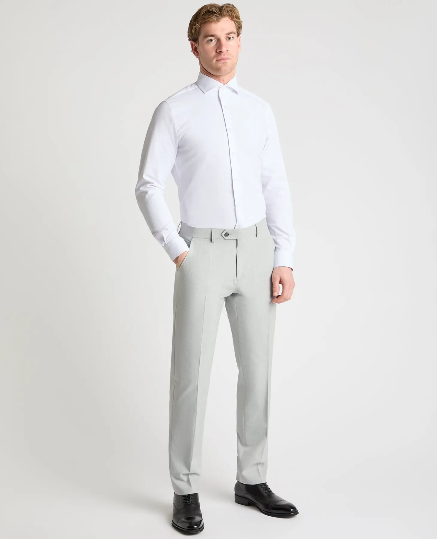 Model is 6’2” /188cm tall and wears a trouser size 34R. Our slim fit trousers are expertly tailored to create the perfect slim silhouette, designed for a narrower appearance through the leg and at the hem.