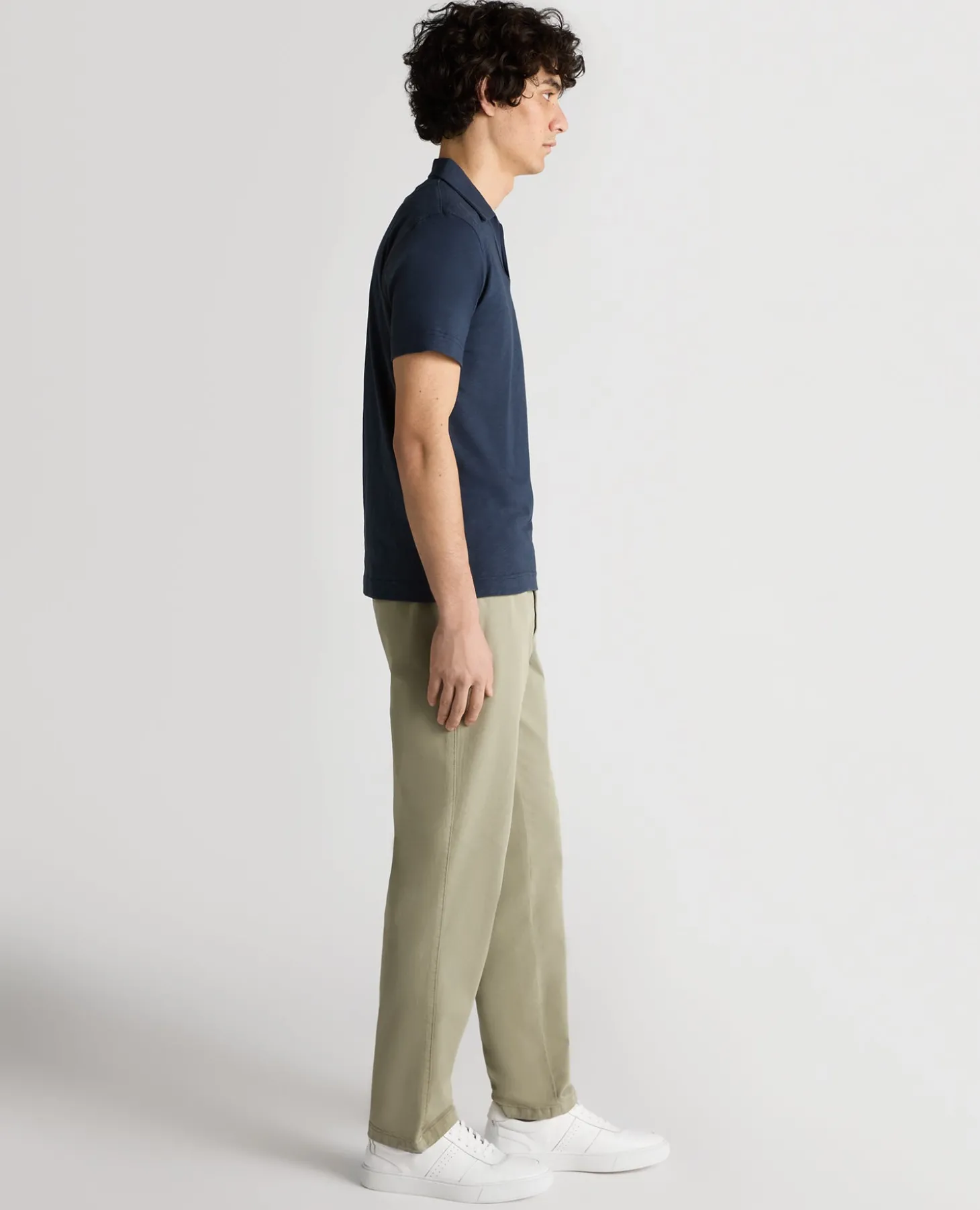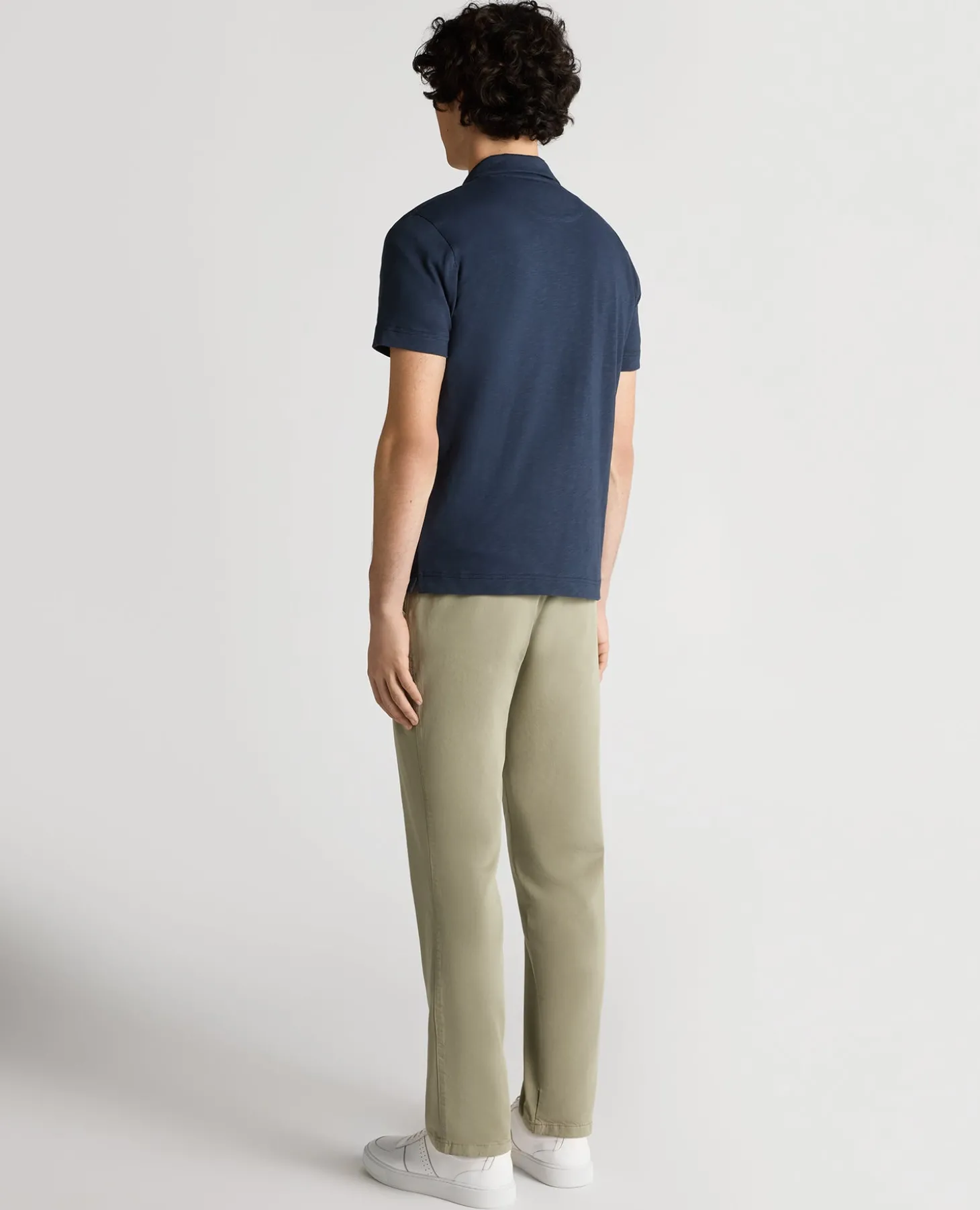 Model is 6’2”/188cm tall and wears a tapered fit short sleeve polo shirt in size M. Model has a 15.5 inch collar, a 40” chest and 32” waist.