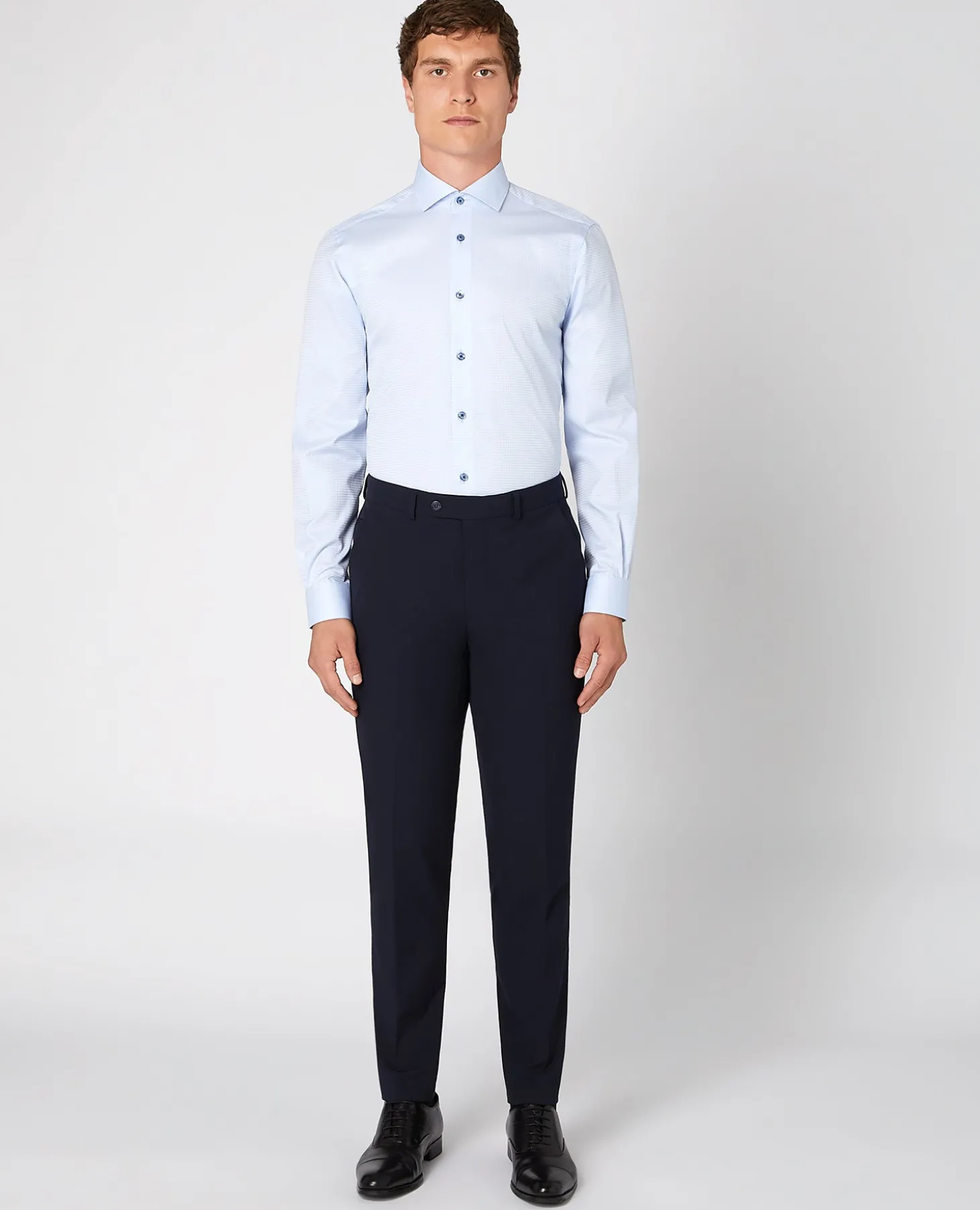 Looks good without asking much from you. Crafted from pure cotton and cut in a tapered fit, this shirt is built for easy, everyday wear. Note the contrast detailing at the inner collar, adding a subtle point of difference that instantly elevates your look.