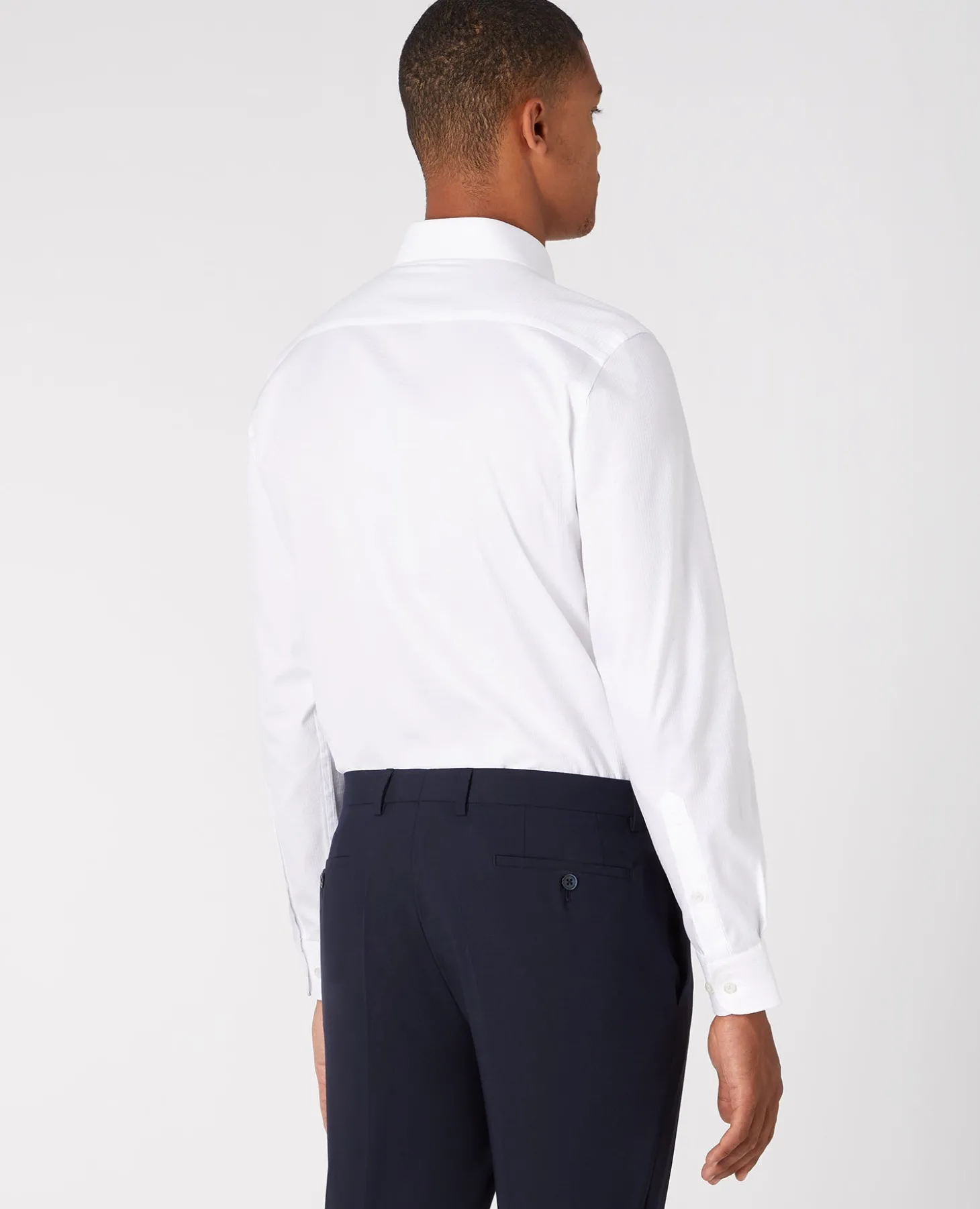 Looks good without asking much from you. Crafted from pure cotton and cut in a tapered fit, this shirt is built for easy, everyday wear. Note the contrast detailing at the inner collar, adding a subtle point of difference that instantly elevates your look.