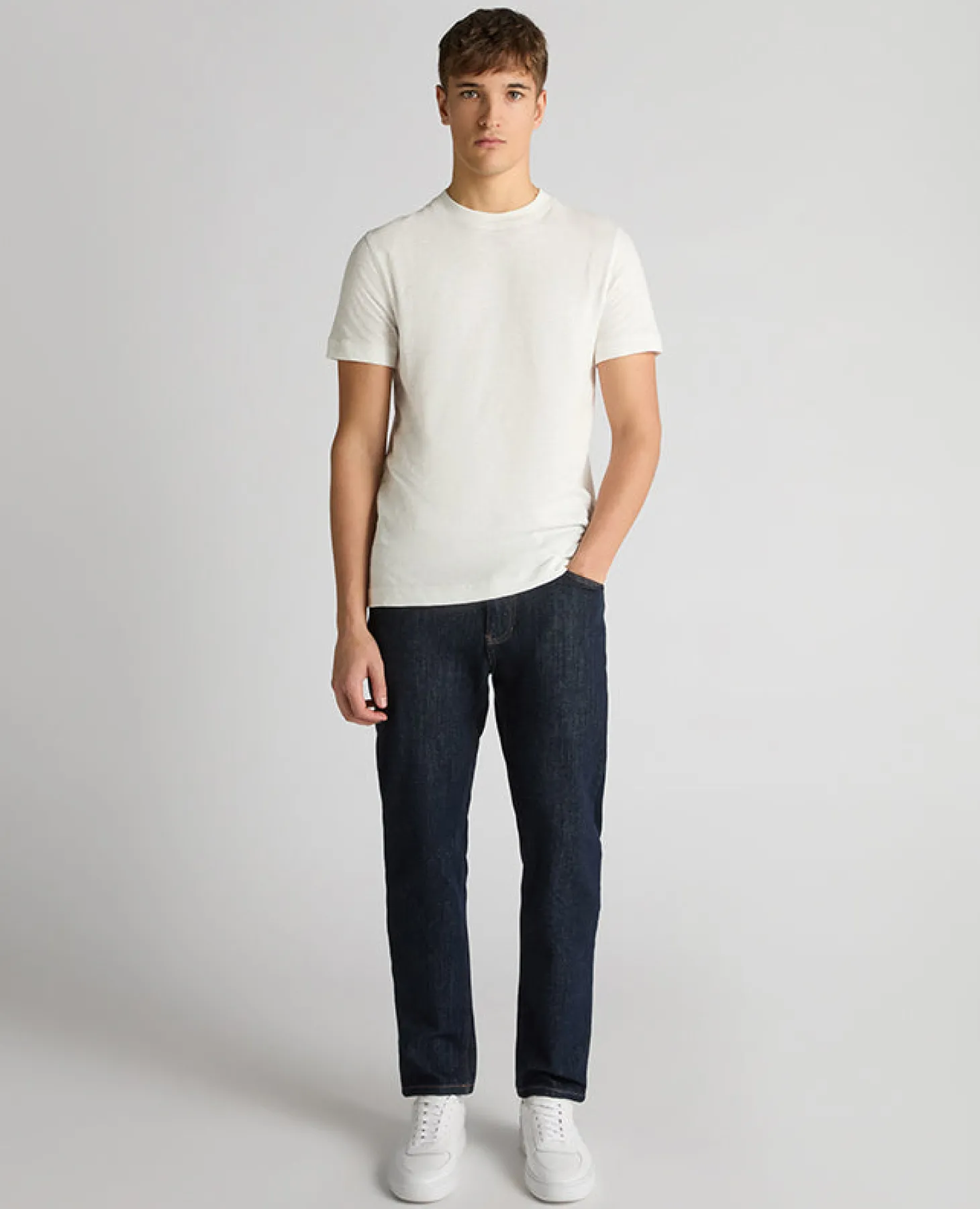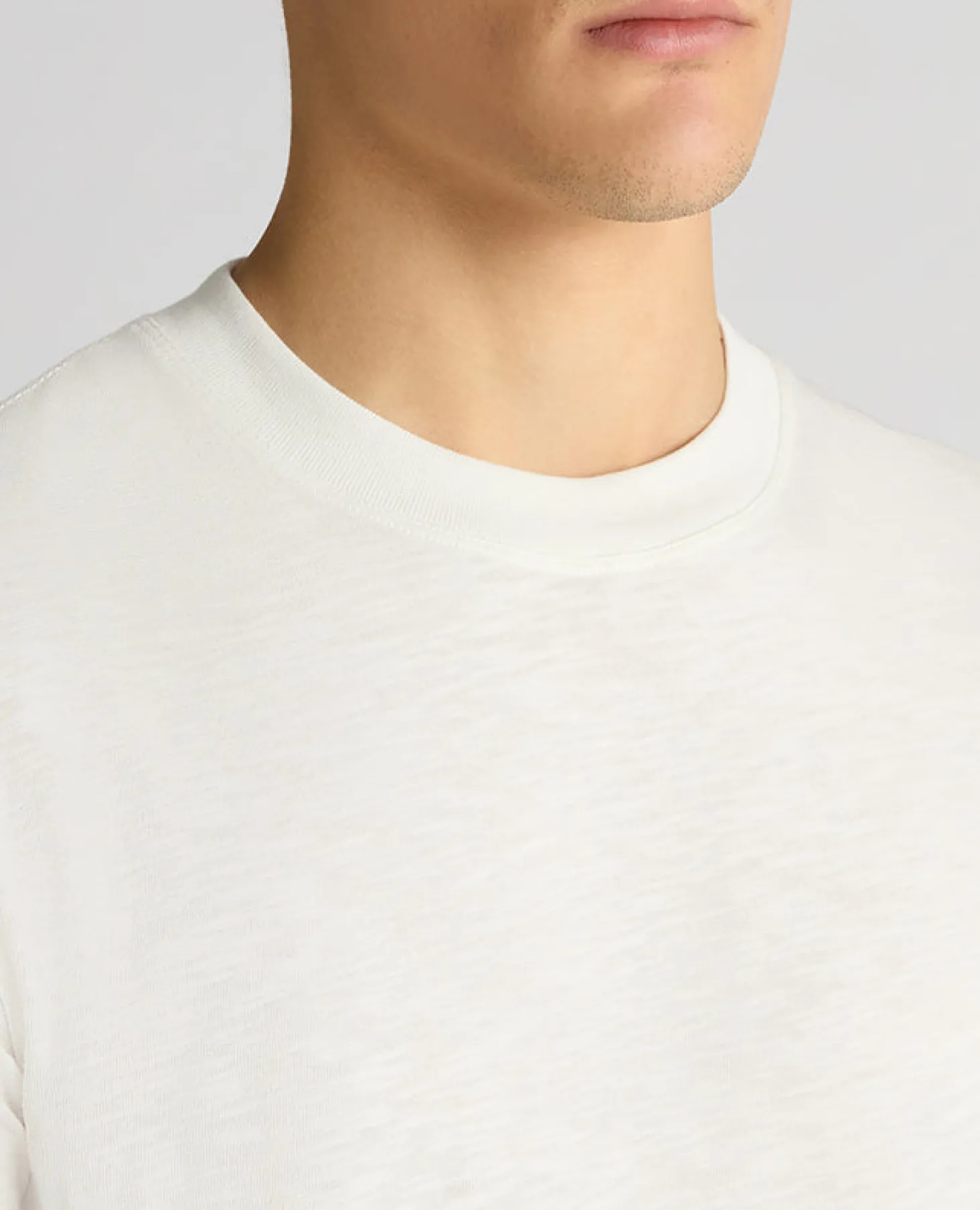 White tapered fit cotton crew neck t-shirt in single jersey slub yarn. Lightweight and breathable in 100% Cotton, making it the perfect tee for spring/summer.
