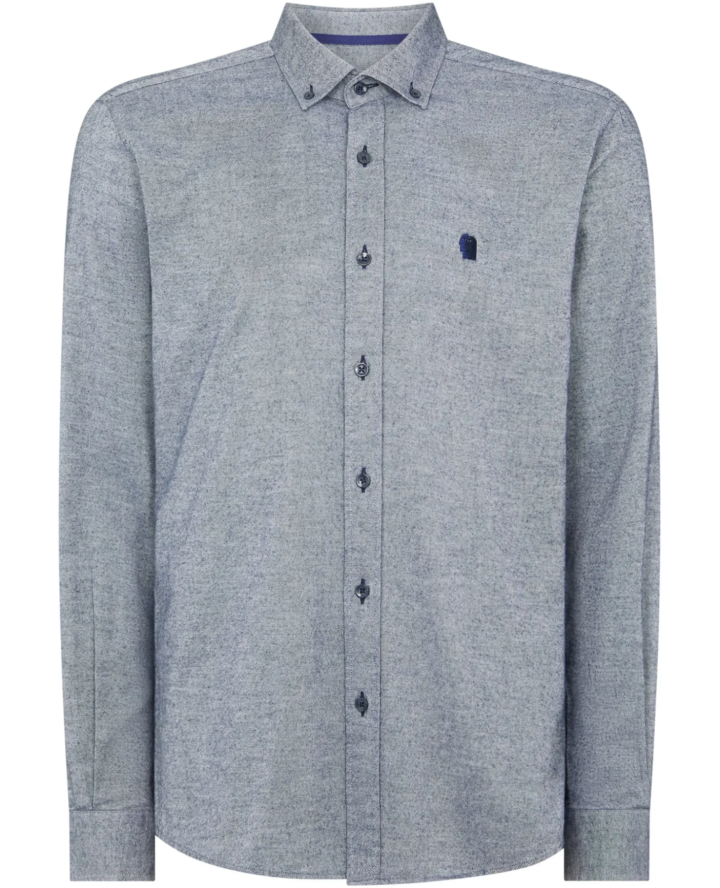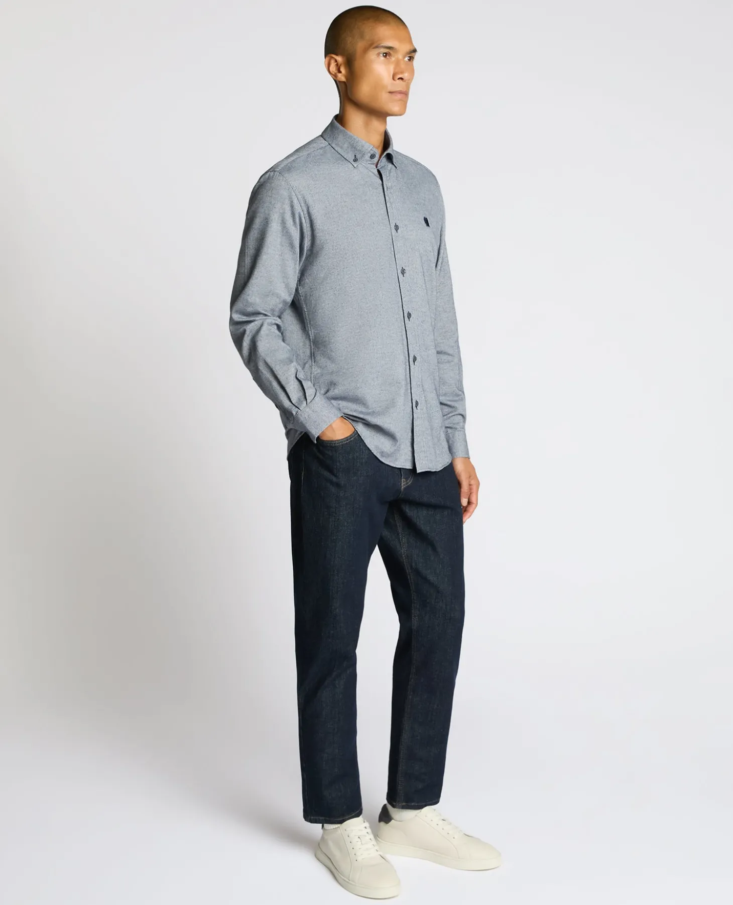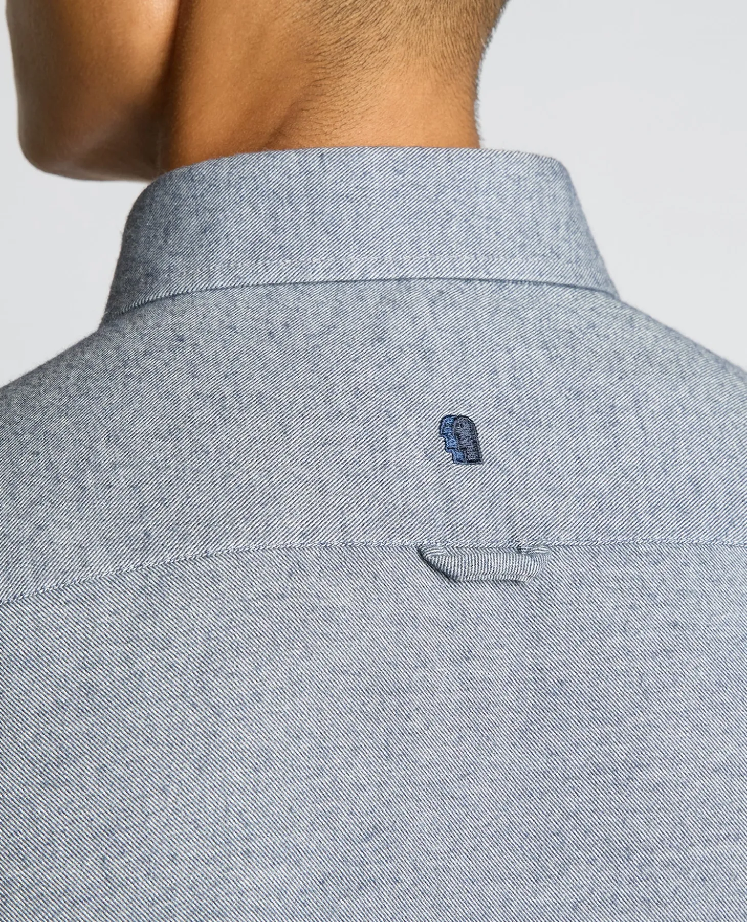 Model is 6’2”/188cm tall and wears a tapered fit shirt in size M. Model has a 15.5 inch collar, a 40” chest and 32” waist.