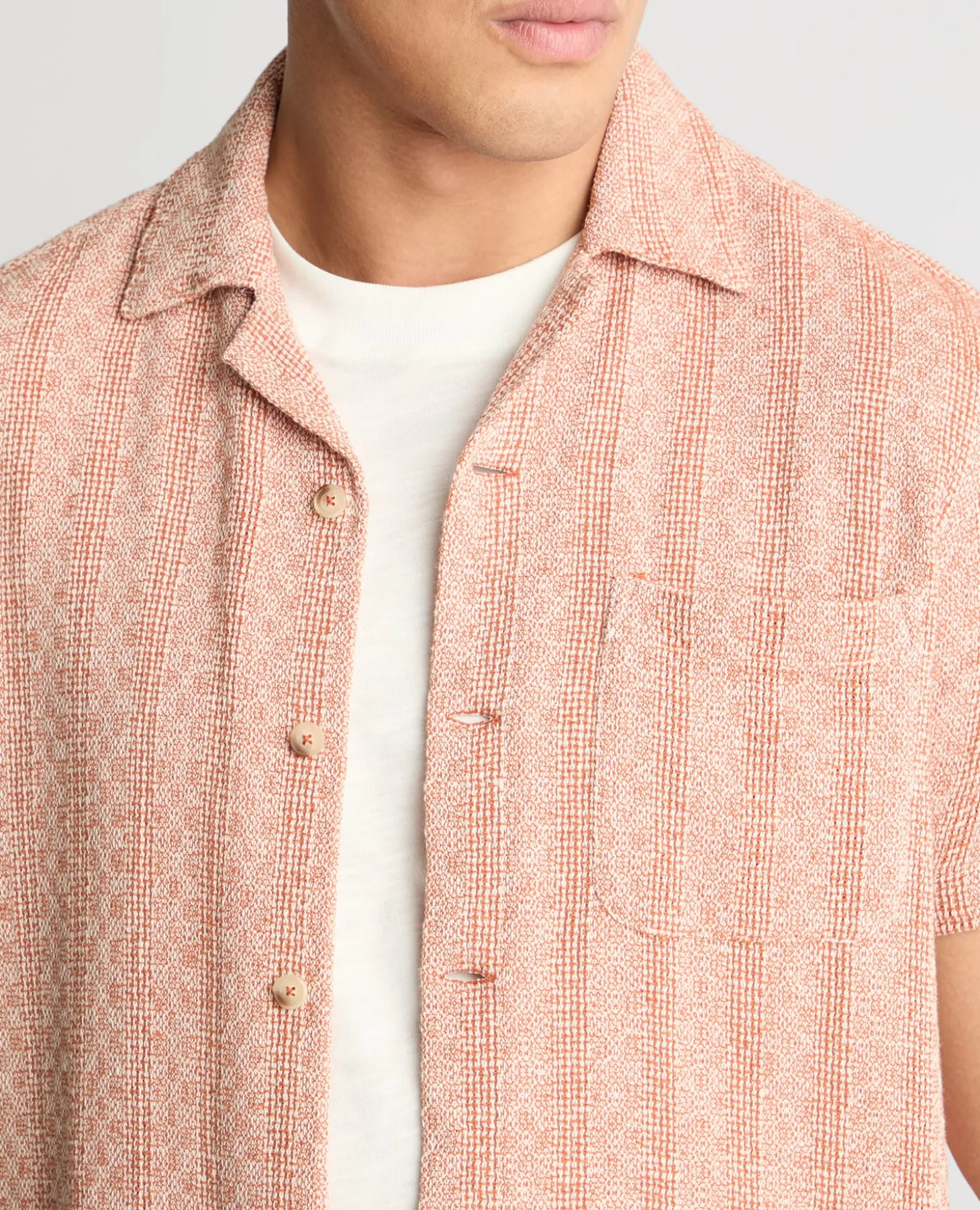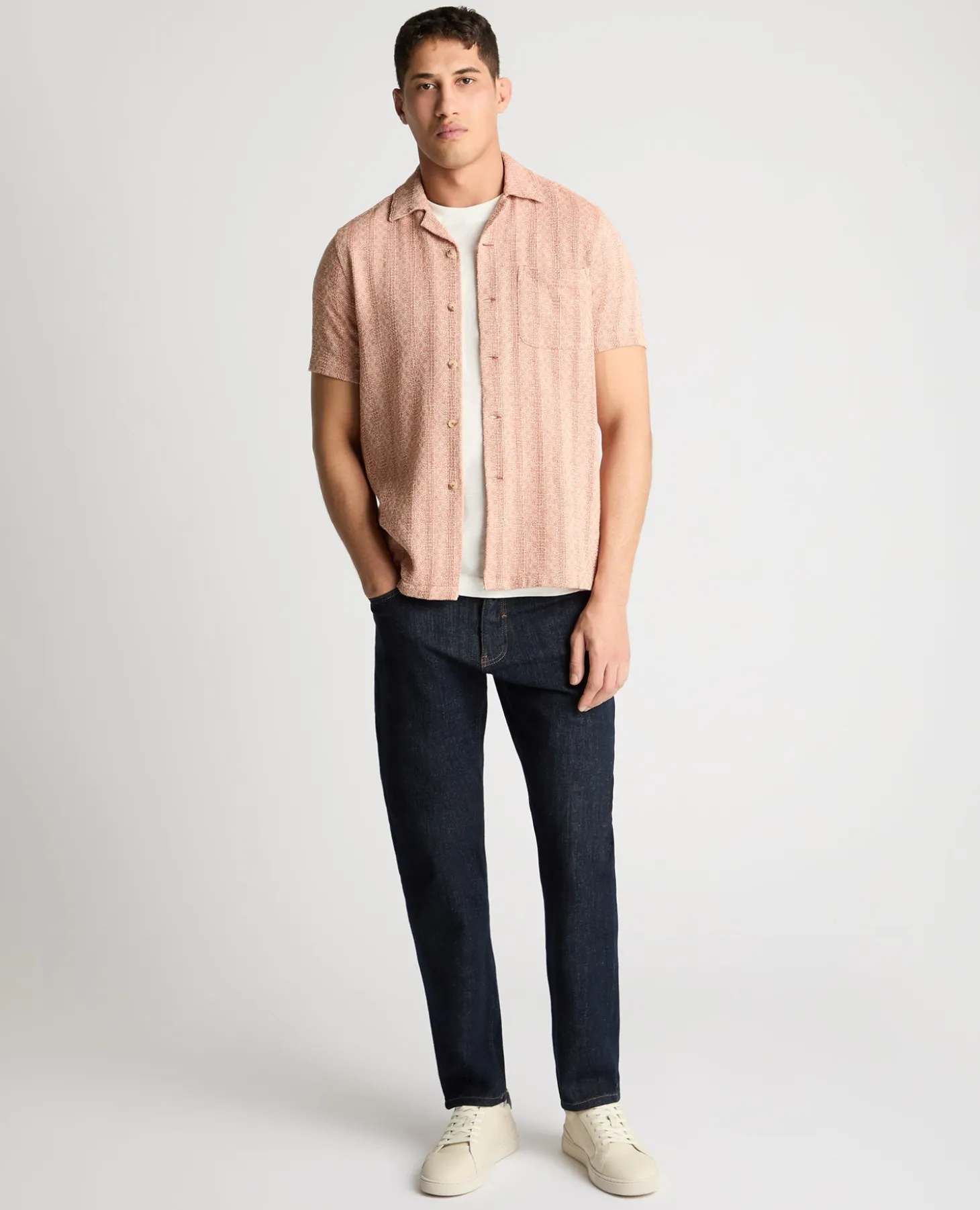 An effortless upgrade on an everyday short-sleeve style. The subtle two-tone textured fabric adds depth and interest, lifting your look without shouting about it. Finished with a relaxed collar and chest pocket, it works just as well worn with chinos as it does thrown on with shorts for laid-back outings.